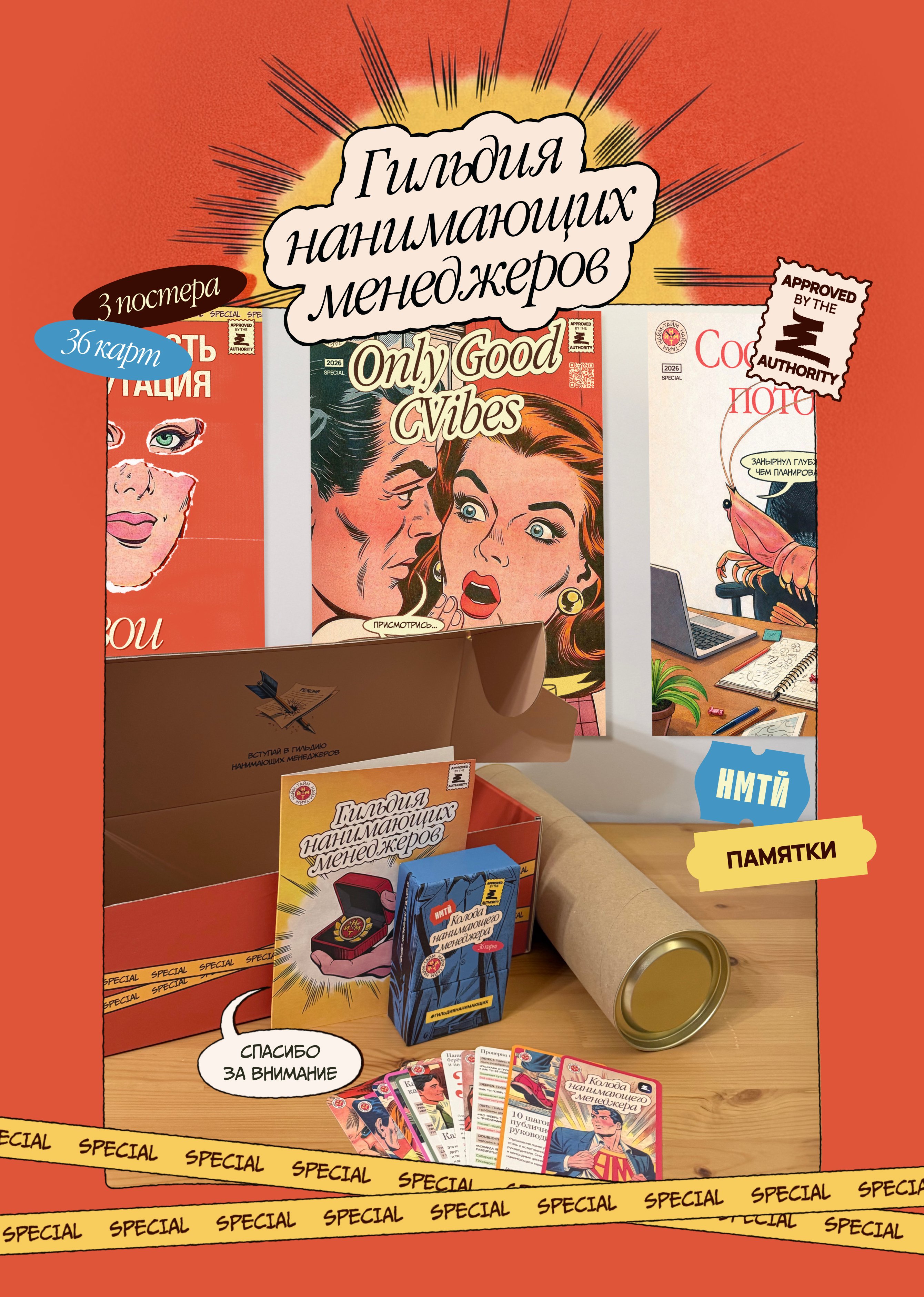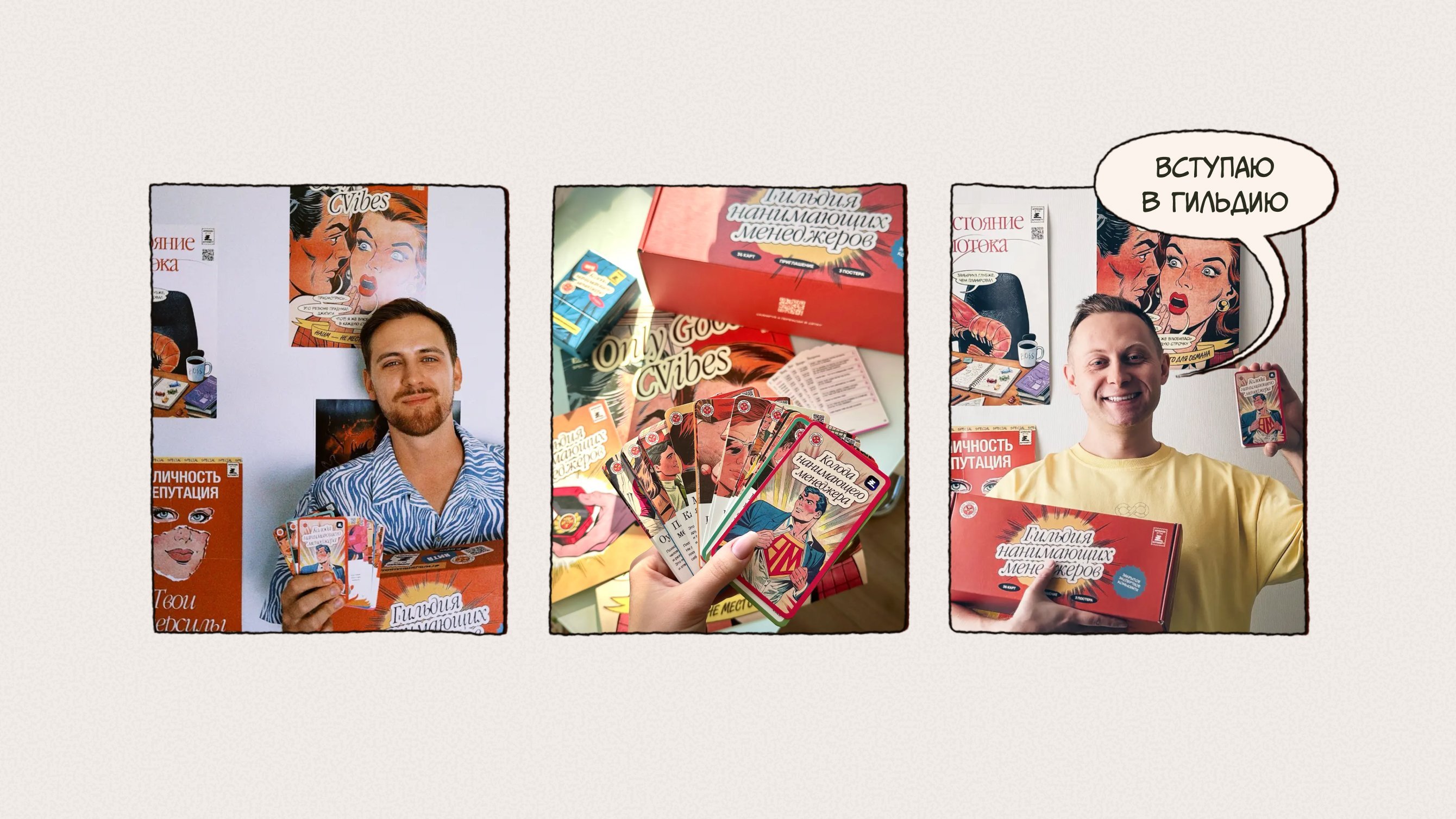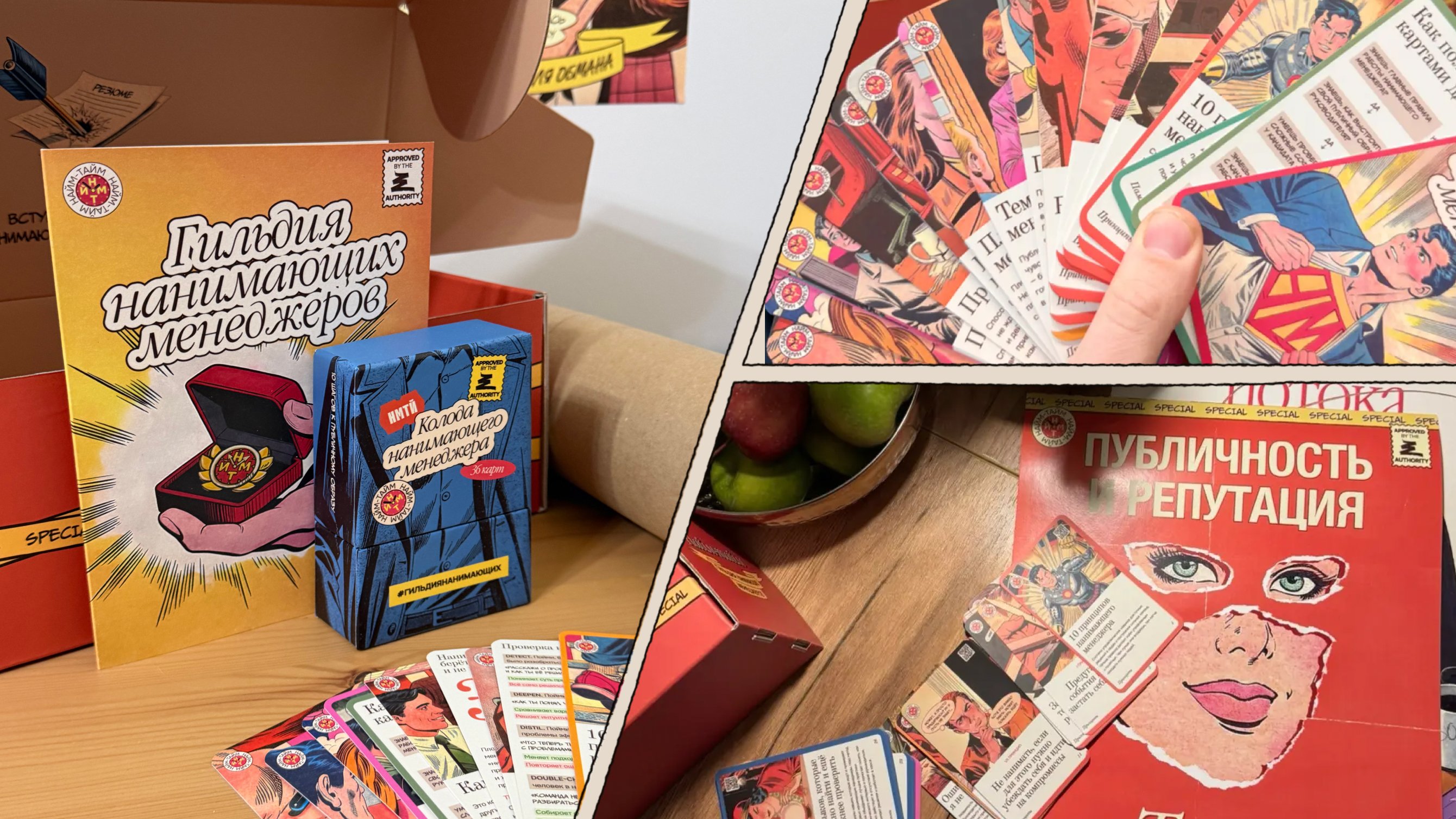Понимая, что цифровой контент теряется в инфопотоке и на фоне ИИ, мы искали формат, который останется в руках и памяти участников. Хотели сразу дать ценность, создать причину принять наш вызов и посвятить свое время работе Гильдии. Понимали, что его могут отклонить, но физический набор сразу привязывал к инициативе и выводил наш канал за пределы Сетки — в офисы, переговорки и на рабочие места нанимающих.