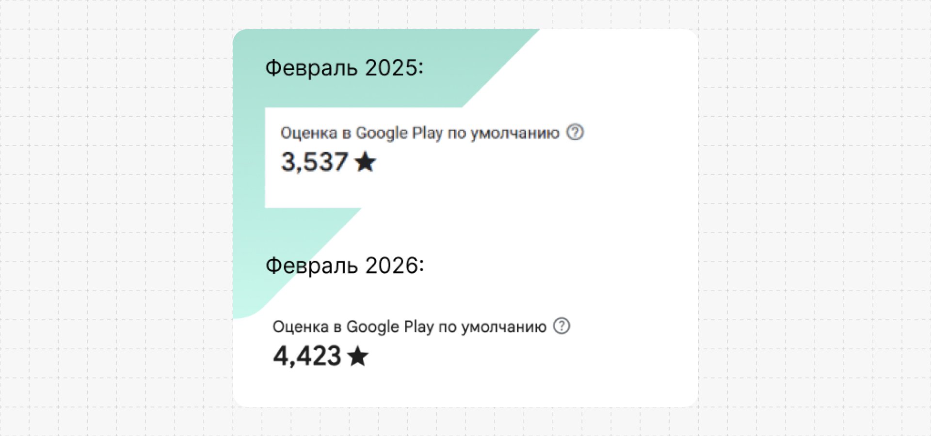 Коллеги ежедневно демонстрируют высокий уровень экспертизы, и благодаря их опыту нам удалось за год добиться значимых результатов: улучшить оценки приложения и обеспечить стабильный рост органических установок.