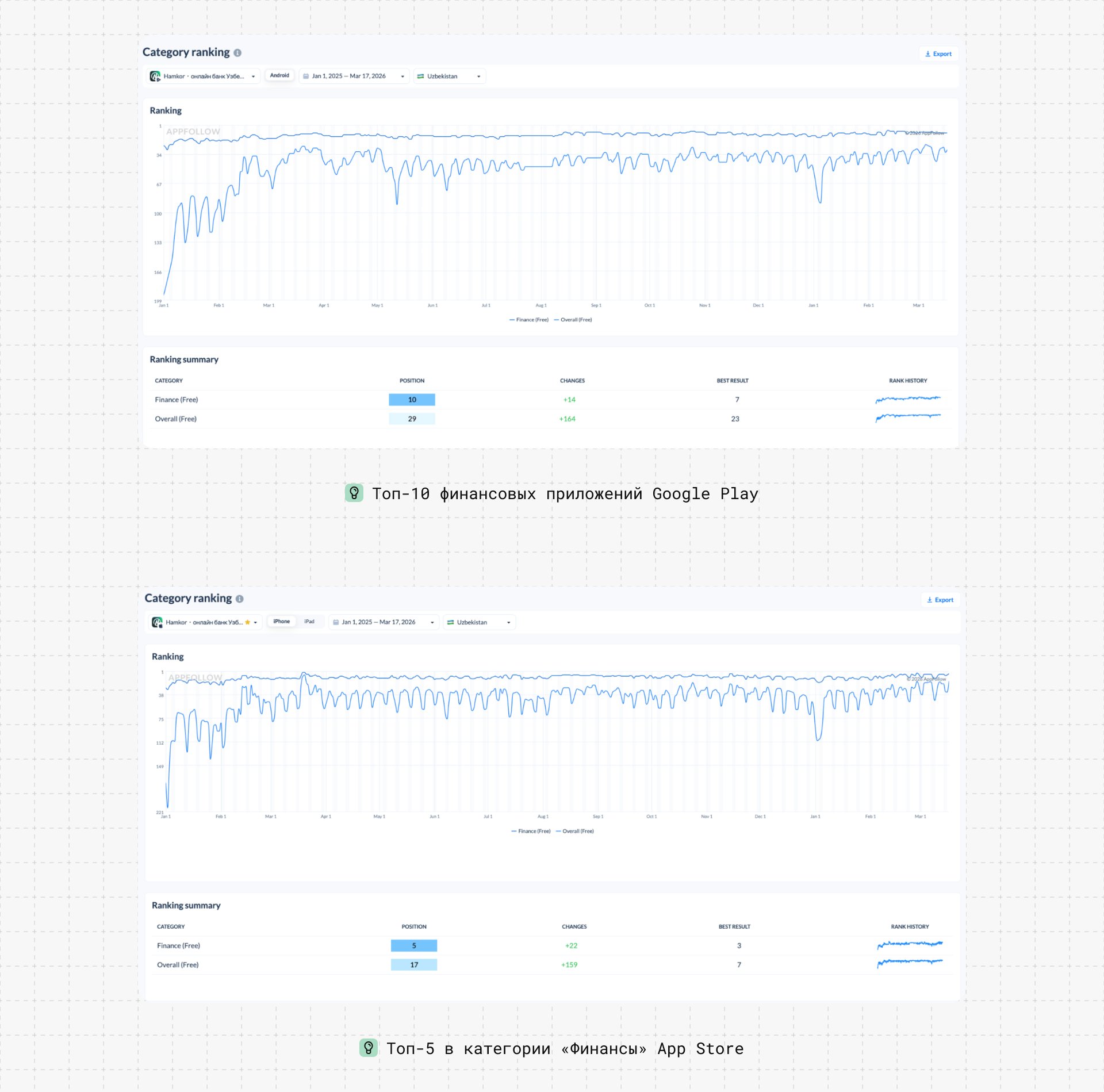 Начало работы с ASO стало важным и своевременным шагом на пути к нашей стратегической цели — создать лучшее мобильное банковское приложение в Республике Узбекистан. А сотрудничество с командой WSS оказалось особенно ценным решением.