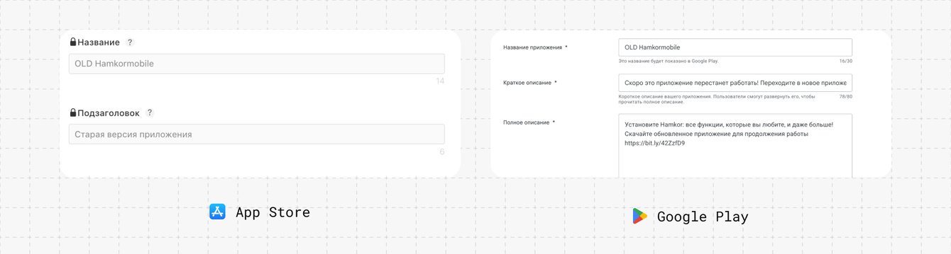 Чтобы упростить переход, мы доработали коммуникацию в сторах. Обновили визуал и тексты так, чтобы пользователю было проще разобраться, зачем и как перейти в новое приложение.