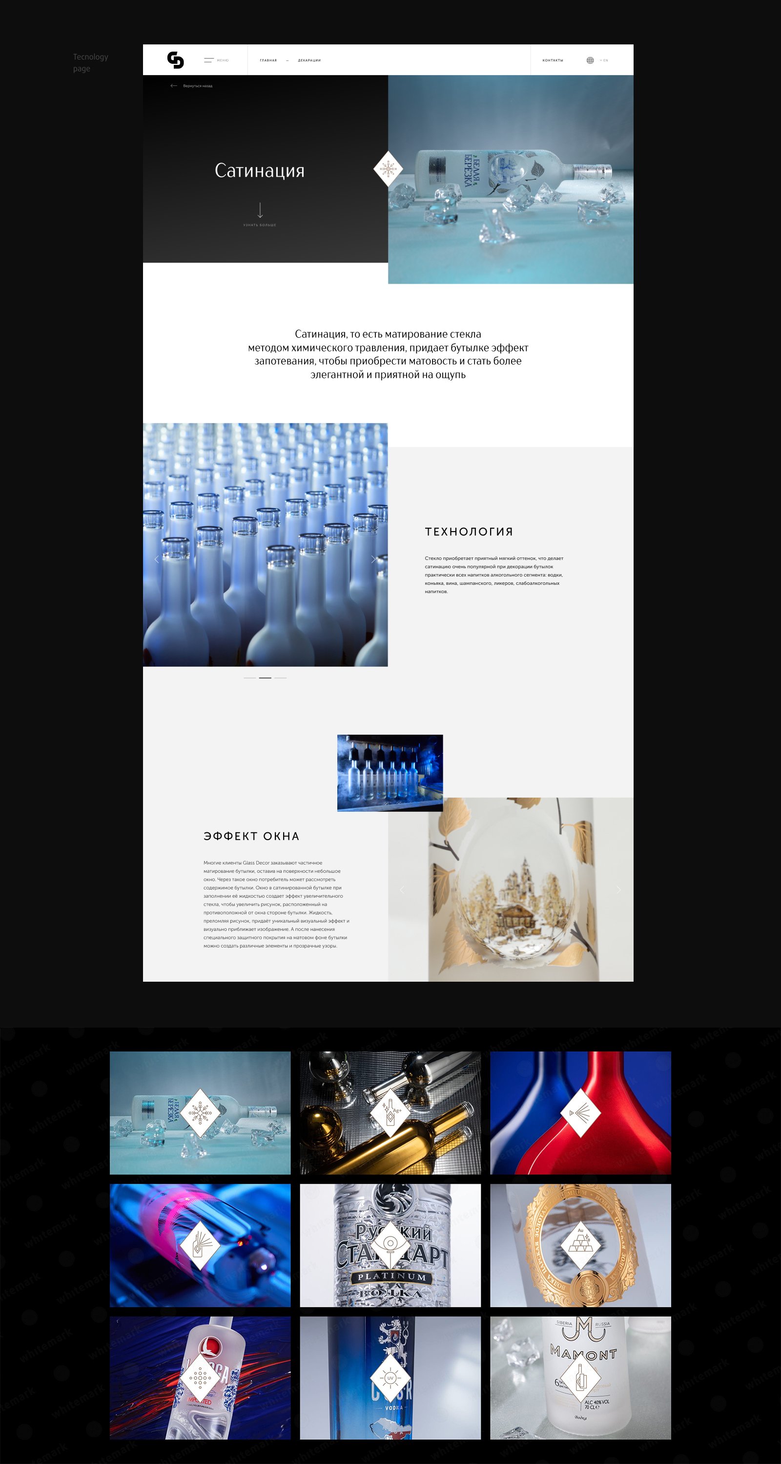 Мы отбросили привычную логику каталога и сфокусировались на повествовании. Каждый технологический процесс — от сатинации до нанесения рисунка — был представлен как отдельный акт со своей драматургией. В центре внимания — не технические характеристики, а визуальный результат, эффект, который производит декор. Мы выстроили маршрут, который ведет пользователя от общего представления о бренде к глубокому пониманию его возможностей, демонстрируя каждую технологию как особый вид искусства.