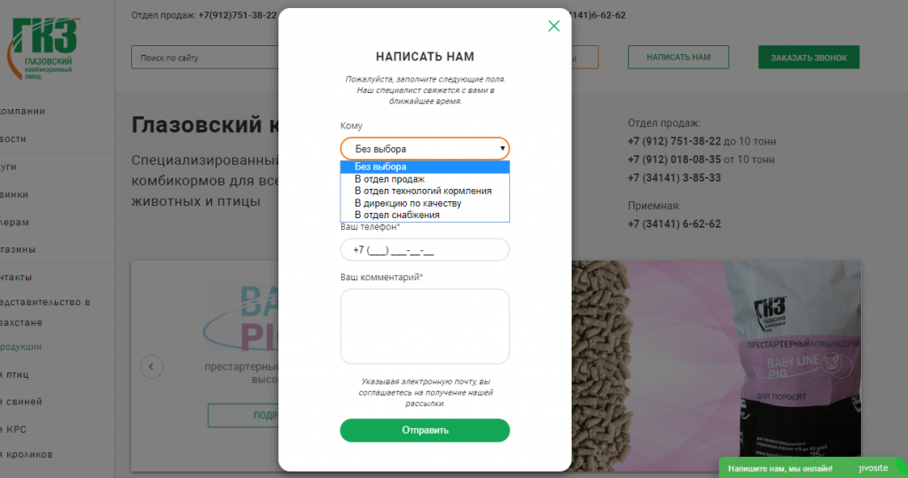 Клиент. Глазовский комбикормовый завод — специализированный производитель престартерных комбикормов, белково-витаминно-минеральных концентратов для сельскохозяйственных животных и птиц. Входит в состав «КОМОС ГРУПП» — одного из крупнейших в России агрохолдингов с полным производственно-сбытовым циклом. Поставляет продукцию на предприятия АПК по всей России и имеет представительство в Казахстане.