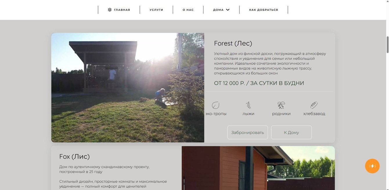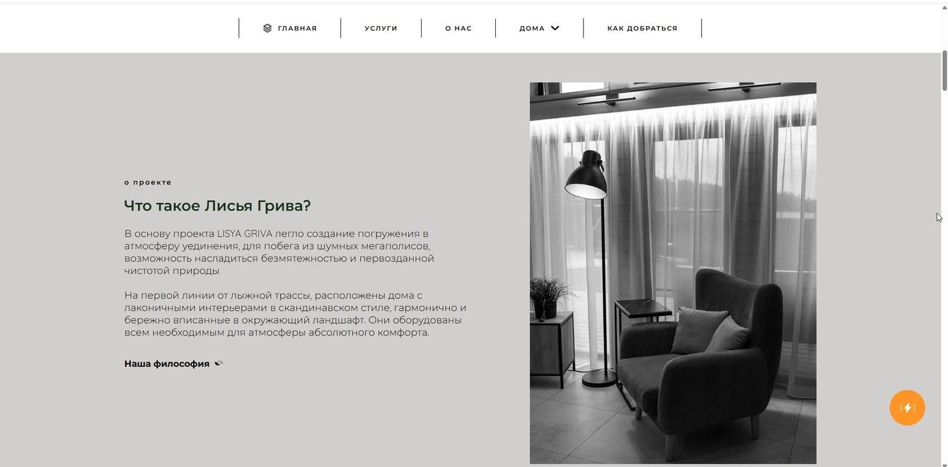 Интерактивный лэндинг для глэмпинга «Лисья Грива».