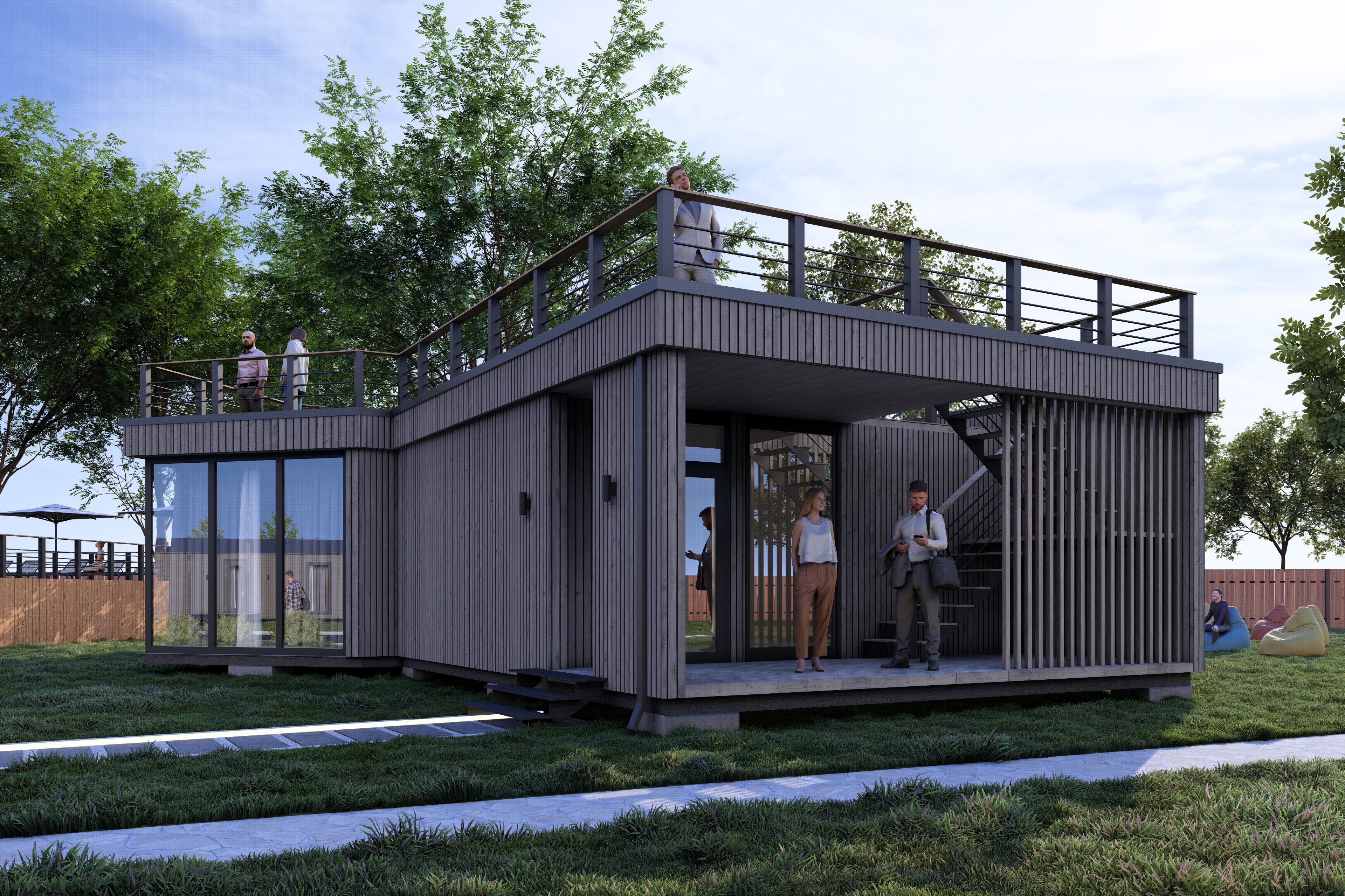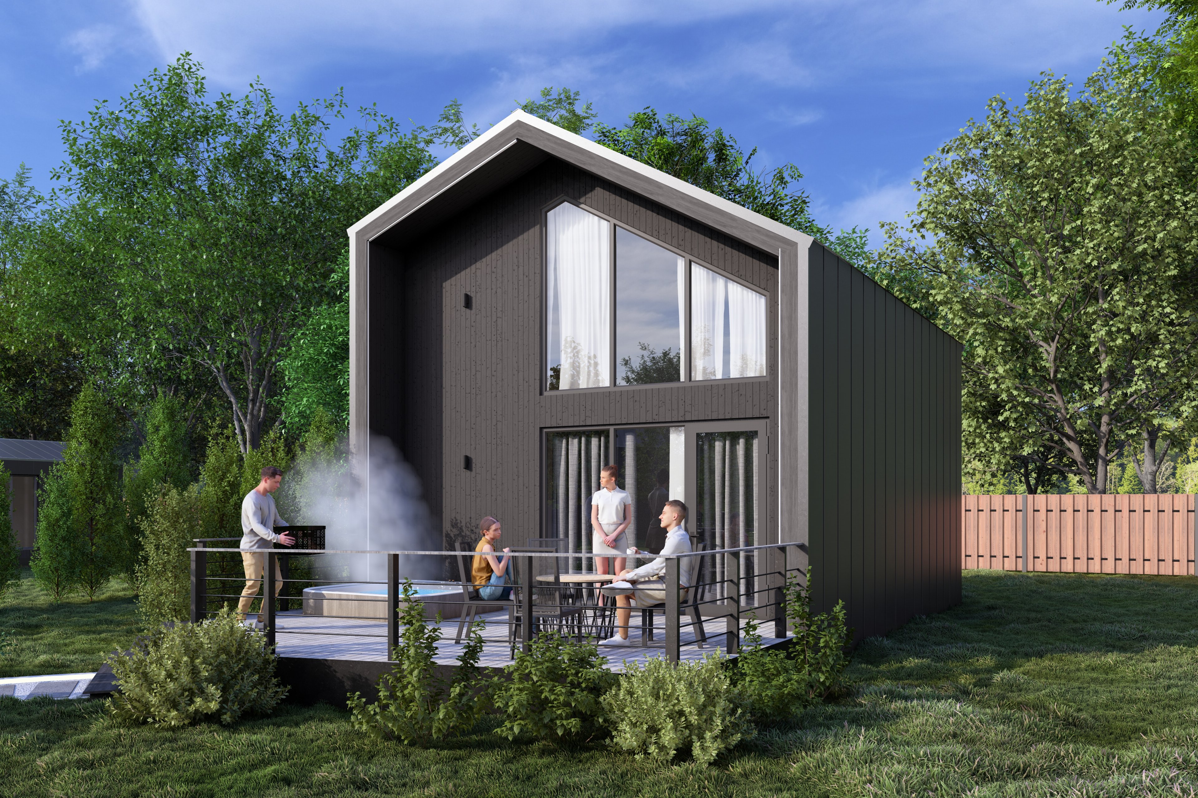 Разработана серия модульных домов в стиле современный "Барнхаус", объединяющая скандинавский минимализм и эко-эстетику. Три варианта вместимости (2/4/6 гостей) с единой дизайн-концепцией, адаптированной под лесной ландшафт.