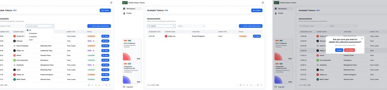Global Impact Temas — платформа предназначенная для проведения закрытого психологического тестирования внутри компании. Продукт состоит из двух частей: панели администратора и панели консультанта.