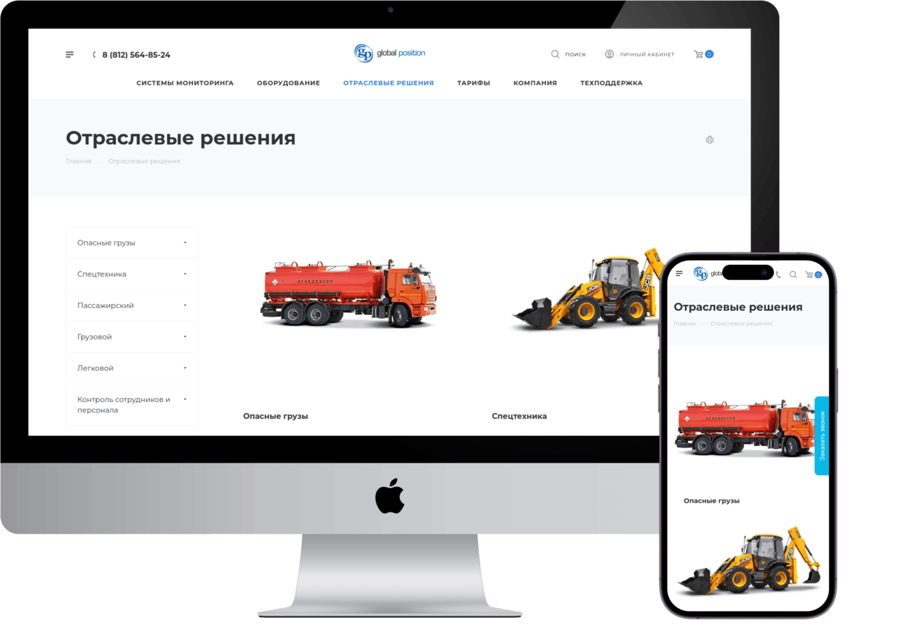 В нашем случае раздел услуги был ключевым для заказчика, т.к. купить оборудование можно без труда у многих поставщиков, а вот оказать качественную услугу по его установке и настройке не каждый исполнитель способен. Компания Global Position сильна именно комплексным подходом и именно это должно было стать очевидным для потенциального клиента при просмотре сайта.