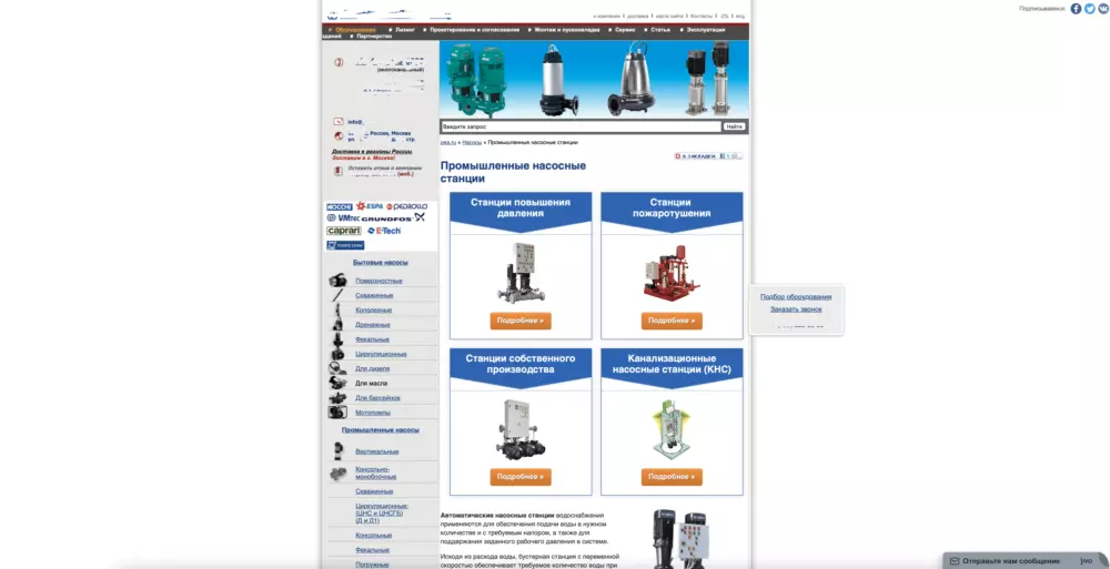 Помимо целевой аудитории и прочих статистических данных, нас еще интересовало, что же есть такого этакого на рынке насосных станций.