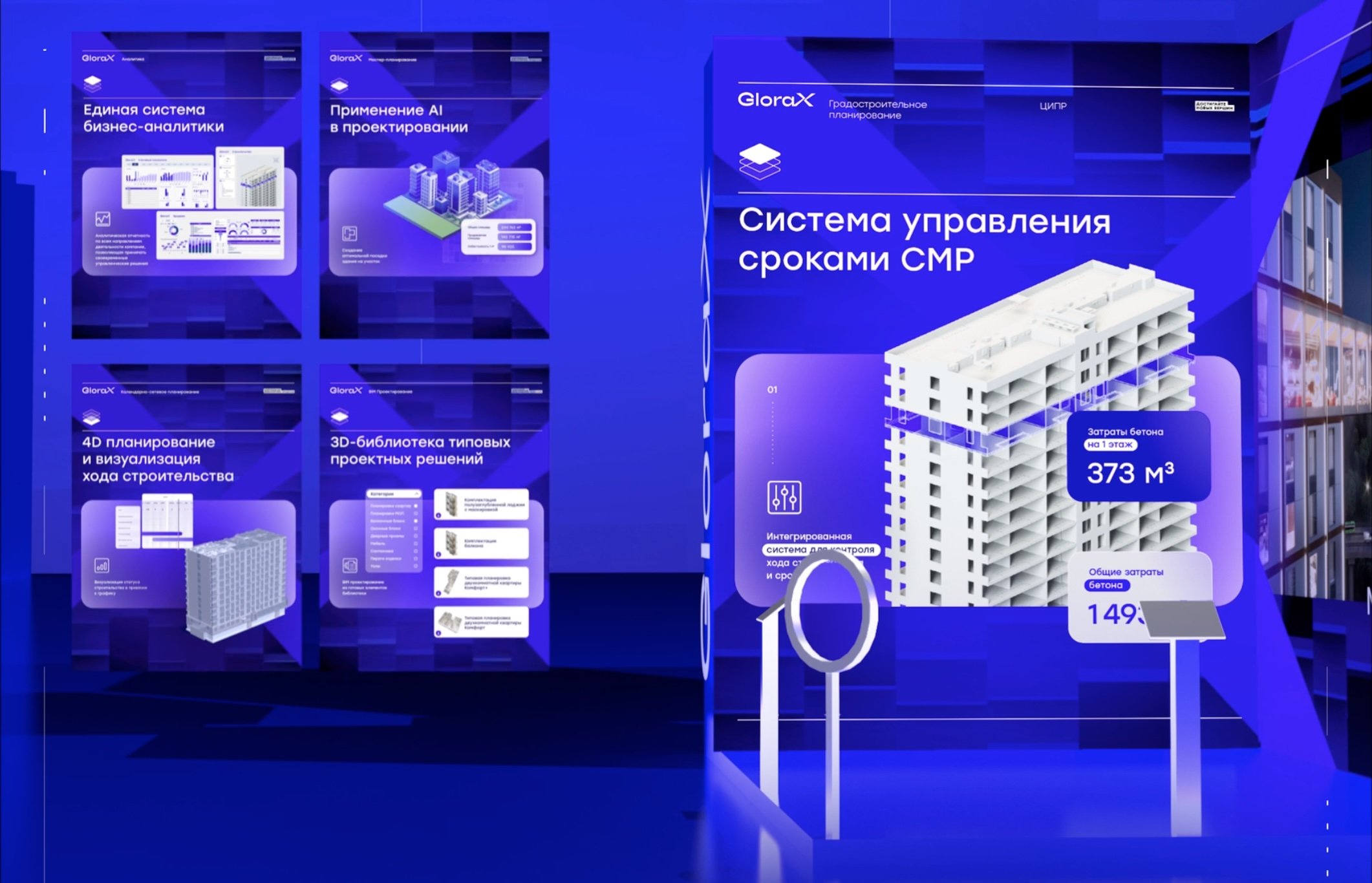 Задачей проекта было представить компанию Glorax на форуме ЦИПР как передового цифрового девелопера. Продемонстрировать цифровизацию всех бизнес-процессов компании, а также, создать визуально привлекательное пространство, которое бы подчеркивало инновационность бренда при помощи 3D анимации и интерактивного дизайна. Основным вызовом стало ограниченное пространство стенда, что потребовало продуманного подхода к размещению контента без потери качества и информативности.