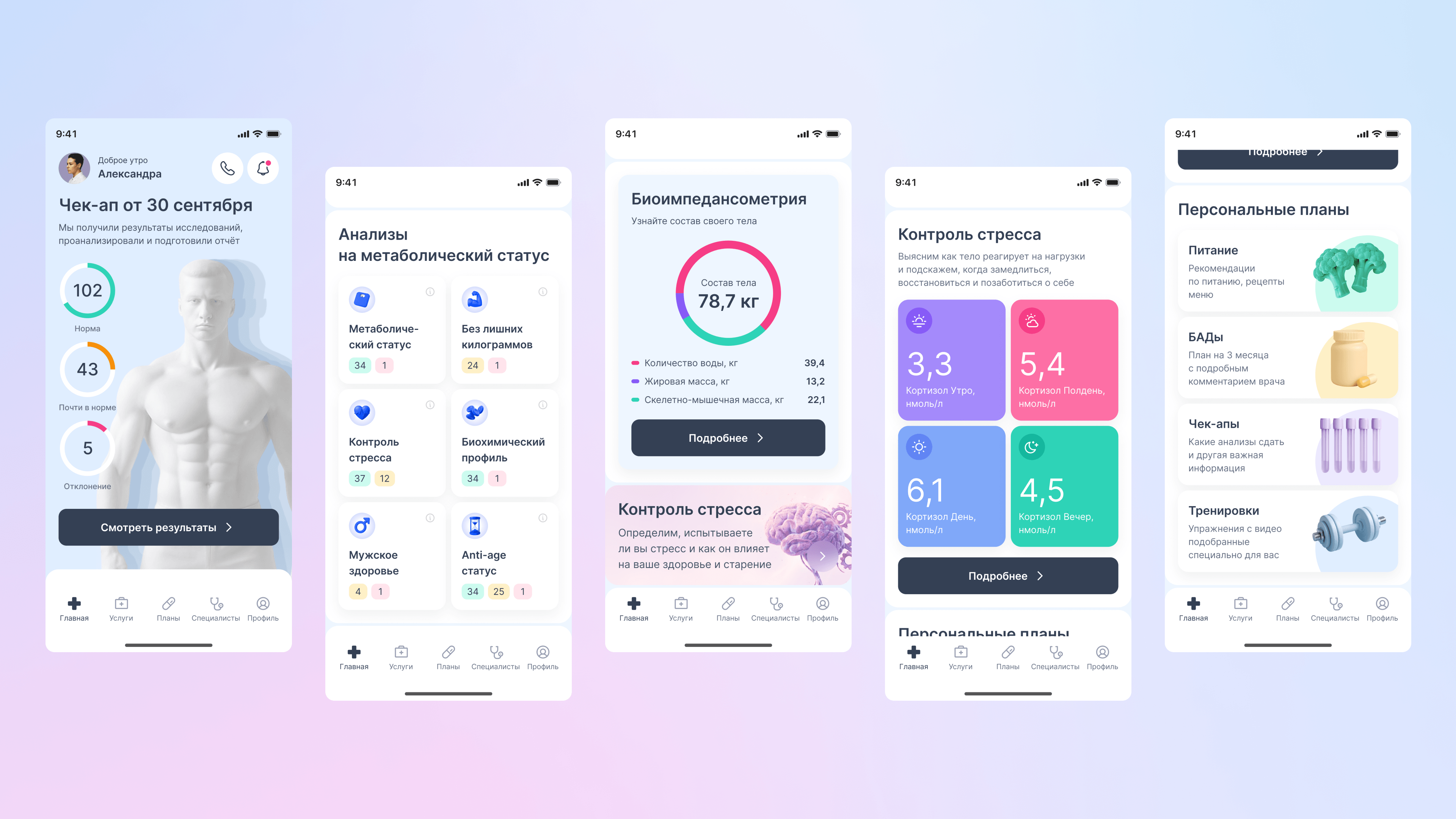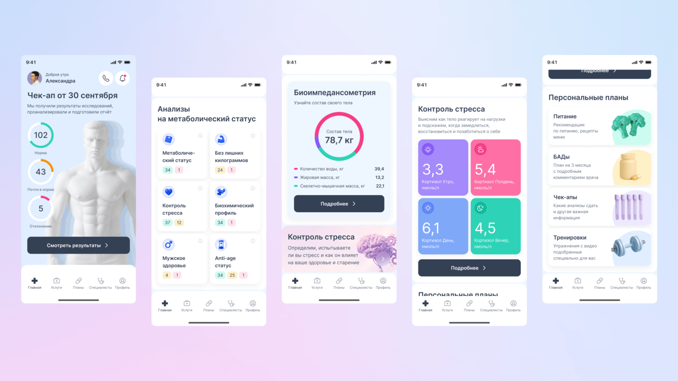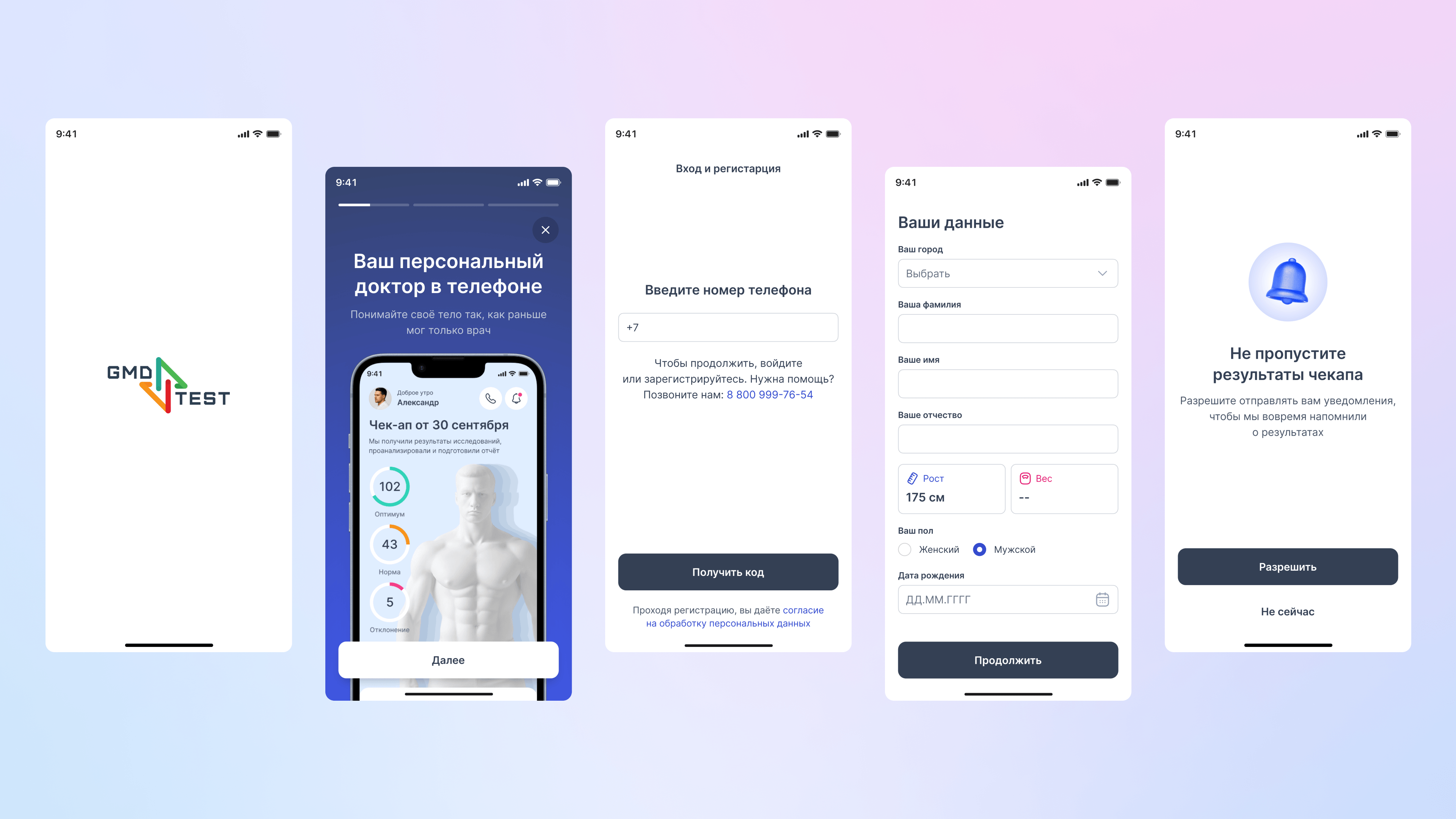 Мы разработали мобильное приложение для клиники превентивной медицины GMD TEST, которое объединяет результаты анализов, персональные рекомендации и сопровождение пациента в одном интерфейсе.