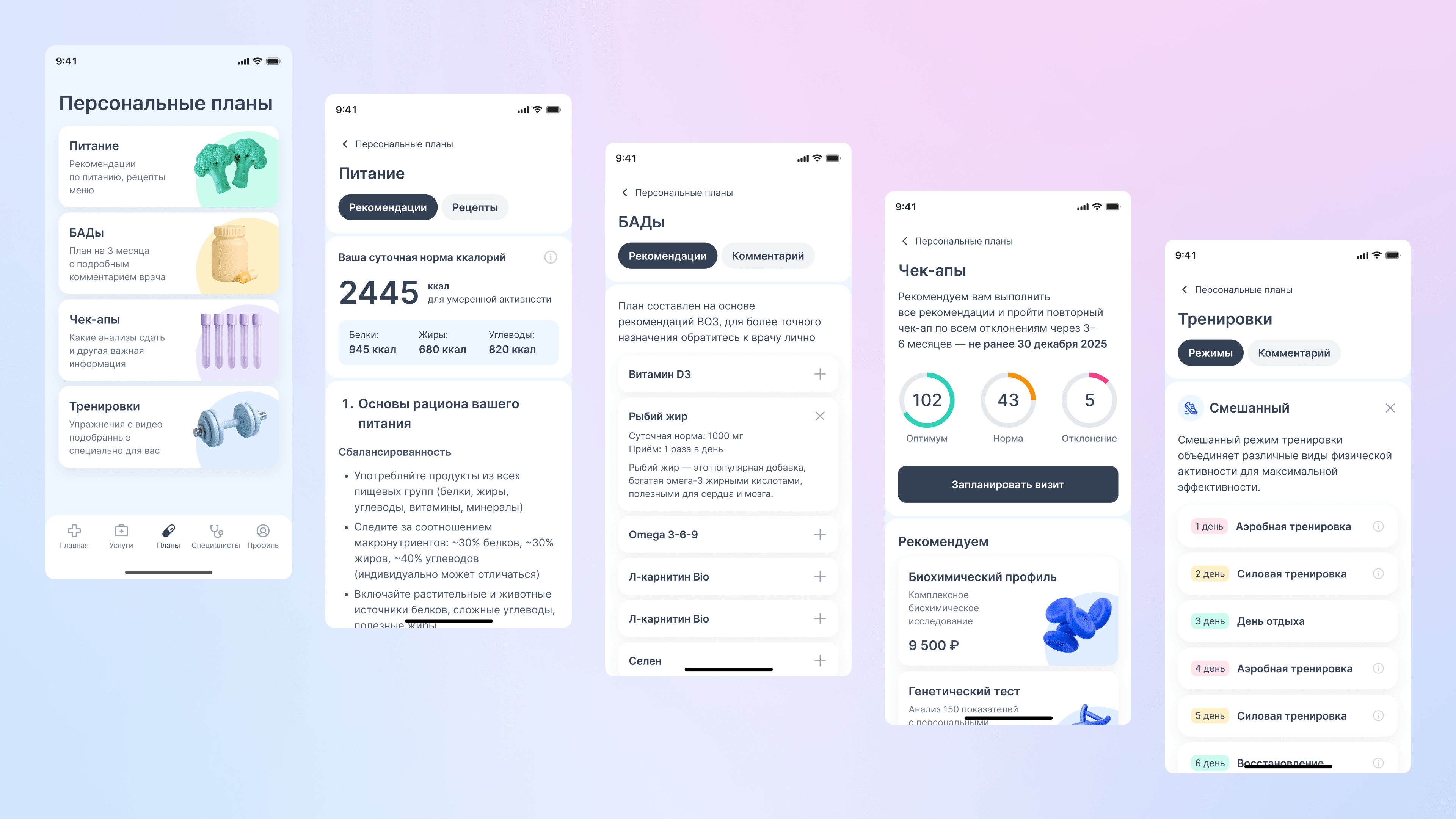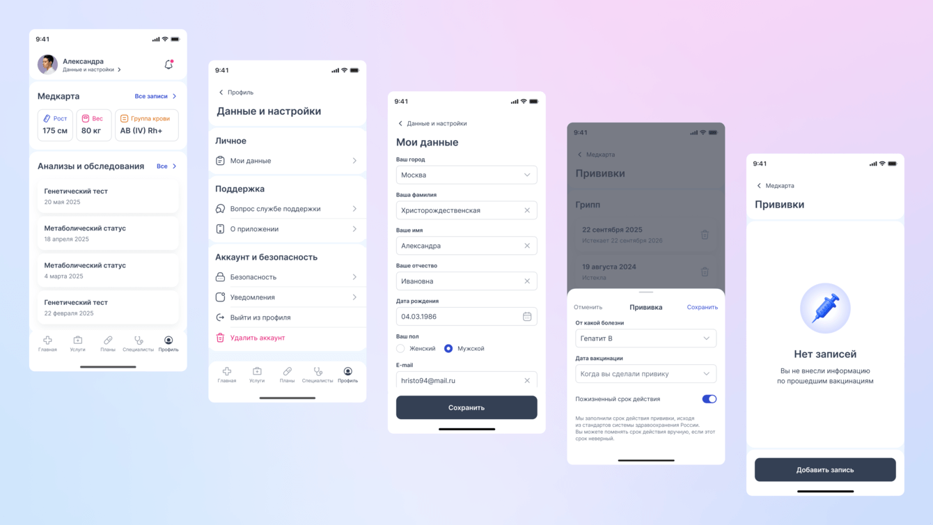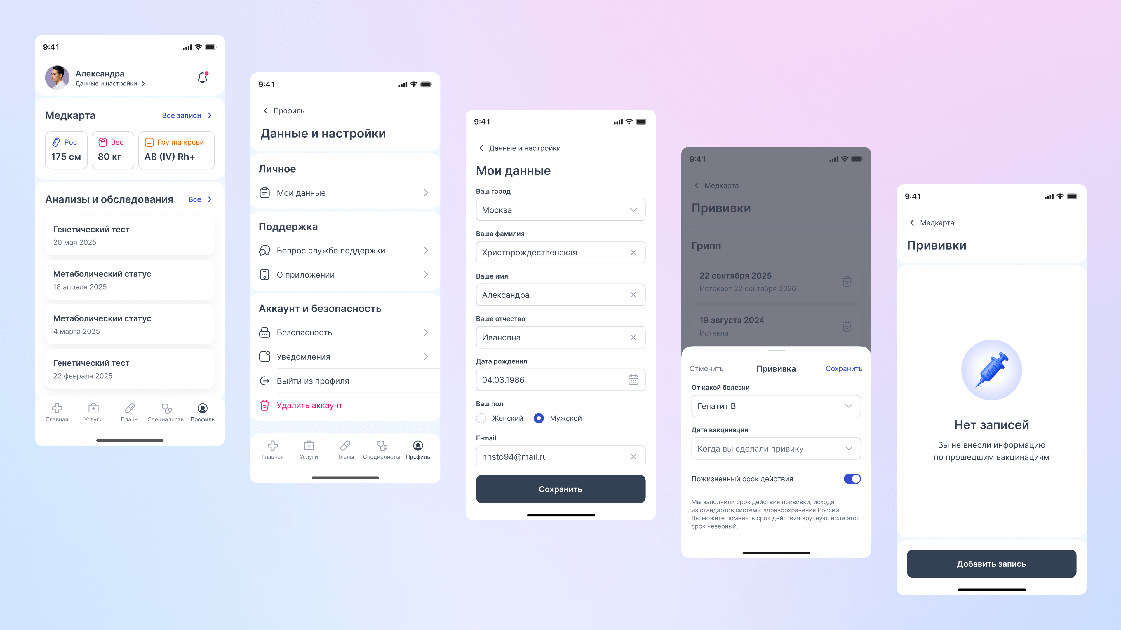 Проект включает мобильное приложение для пациентов, административную панель для врачей и внутренней команды, а также маркетинговый лендинг.