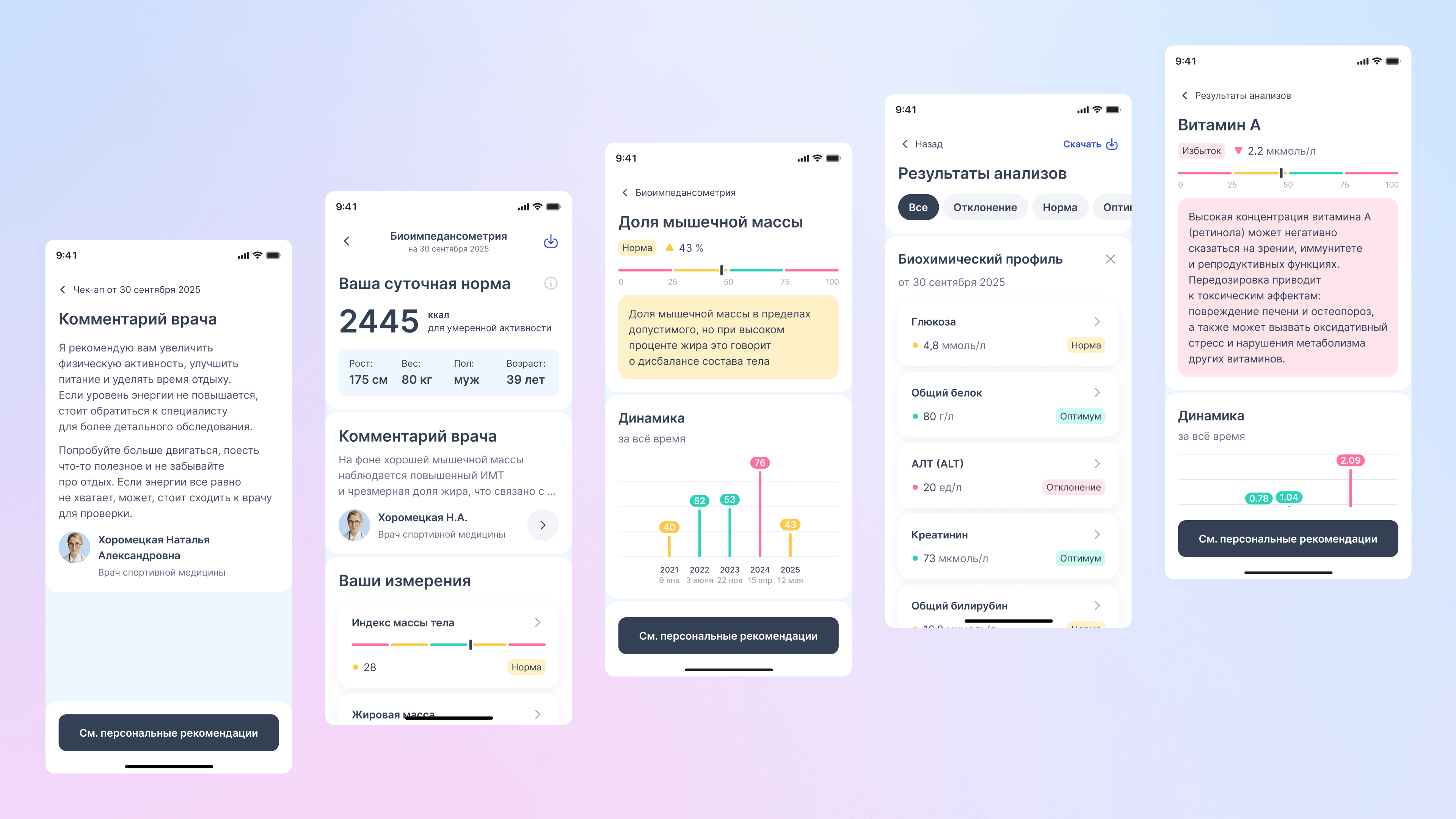 Далее пользователь видит расшифровку показателей и получает персональные рекомендации от врача.