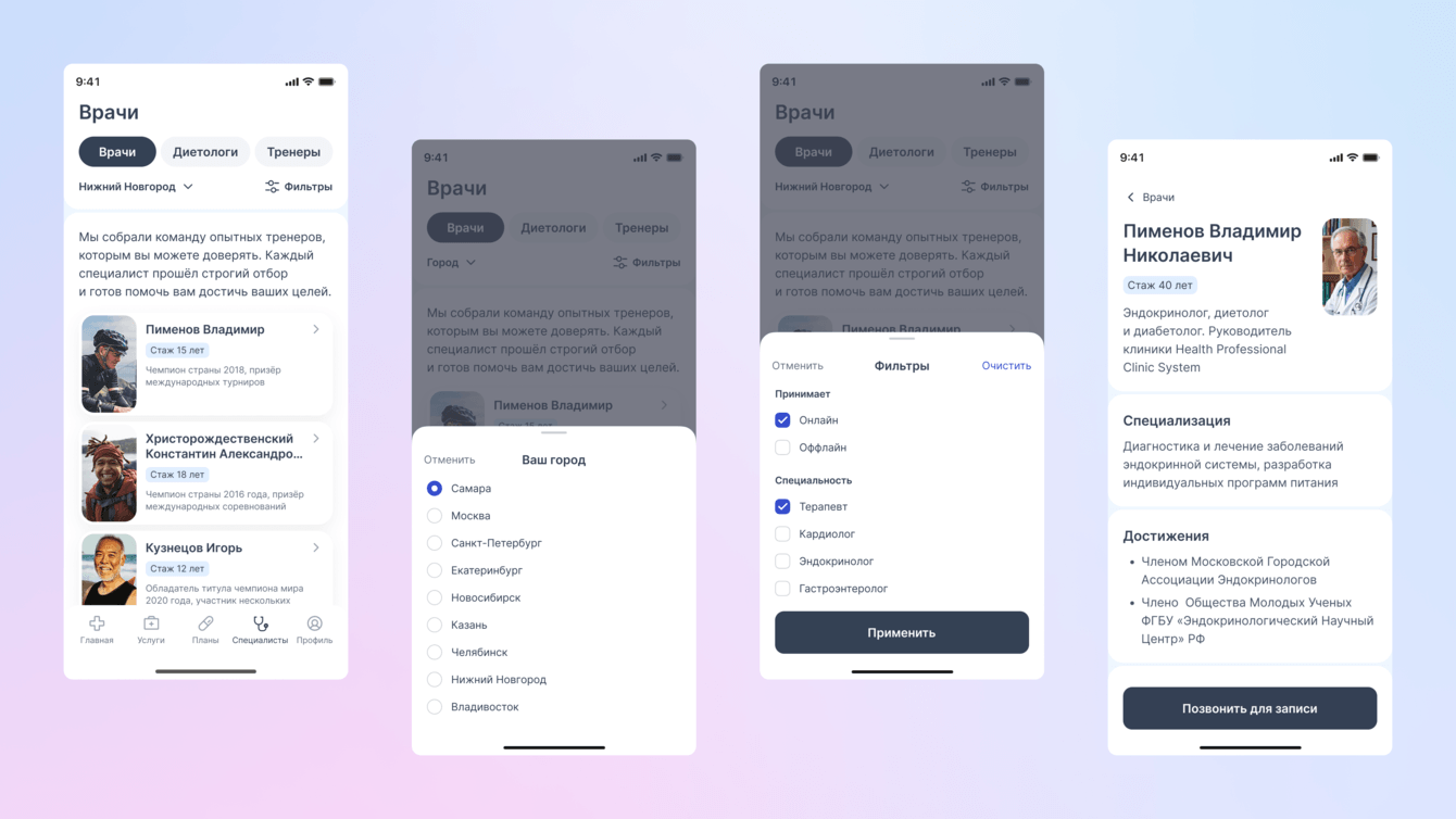 Приложение закрывает весь цикл взаимодействия пациента с клиникой.