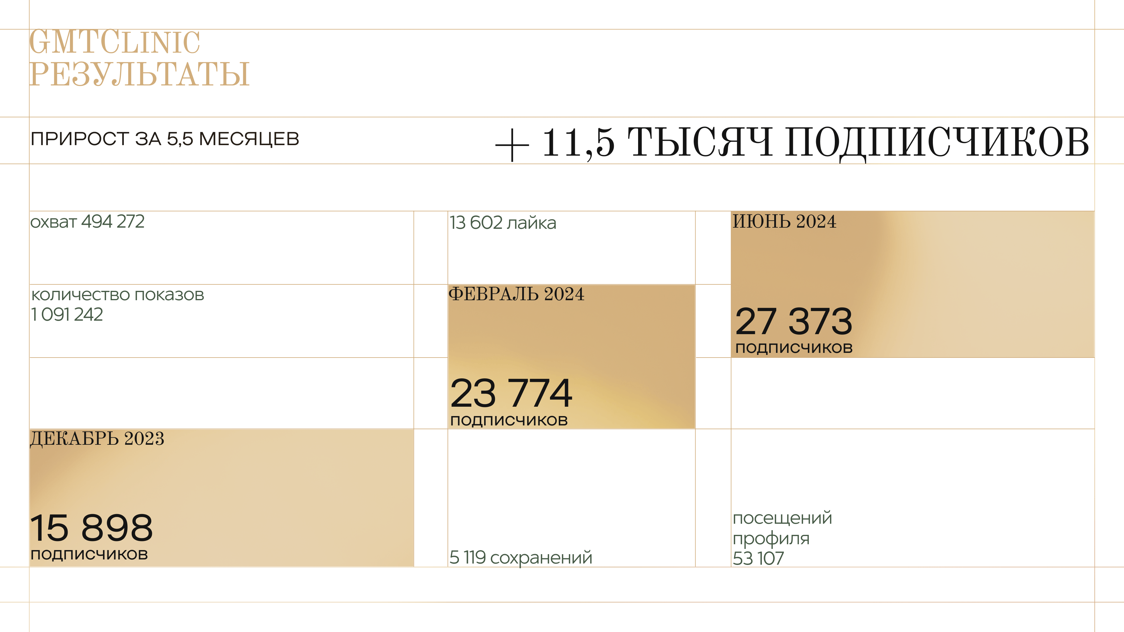 За 5,5 месяцев, что мы работали с клиникой, на аккаунт подписались 11,5 тысяч человек.