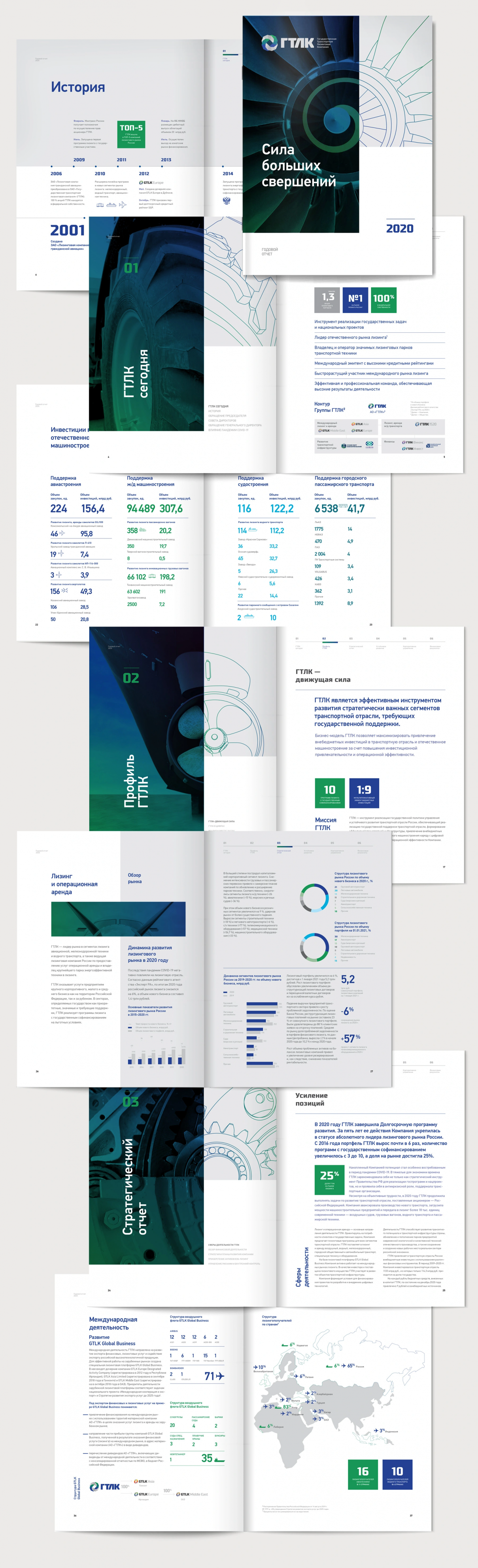 Разработка дизайна и верстка годового отчета за 2020 год для самой крупной лизинговой компании России.