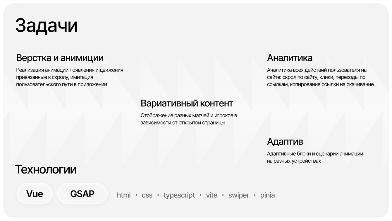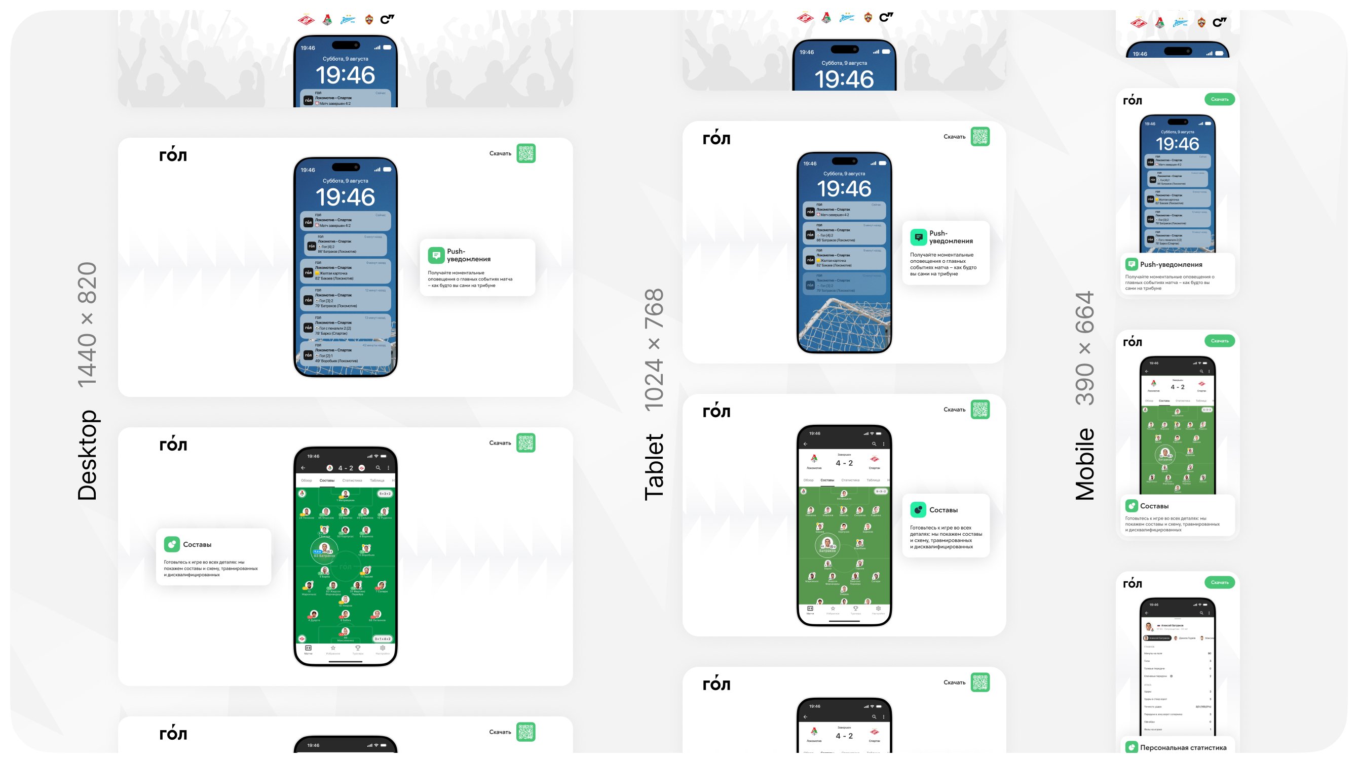 К нам обратились наши партнеры, креативная студия “Сирена”, с запросом на эксперсс разработку промо лендинга для приложения. “ГОЛ” - мобильное приложение для футбольных болельщиков, позволяющее следить за результатами матчей и отслеживать всю статистику.