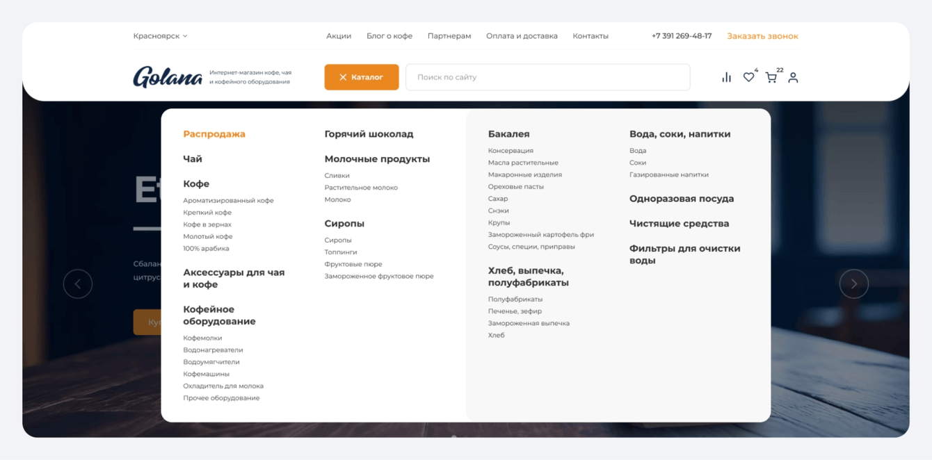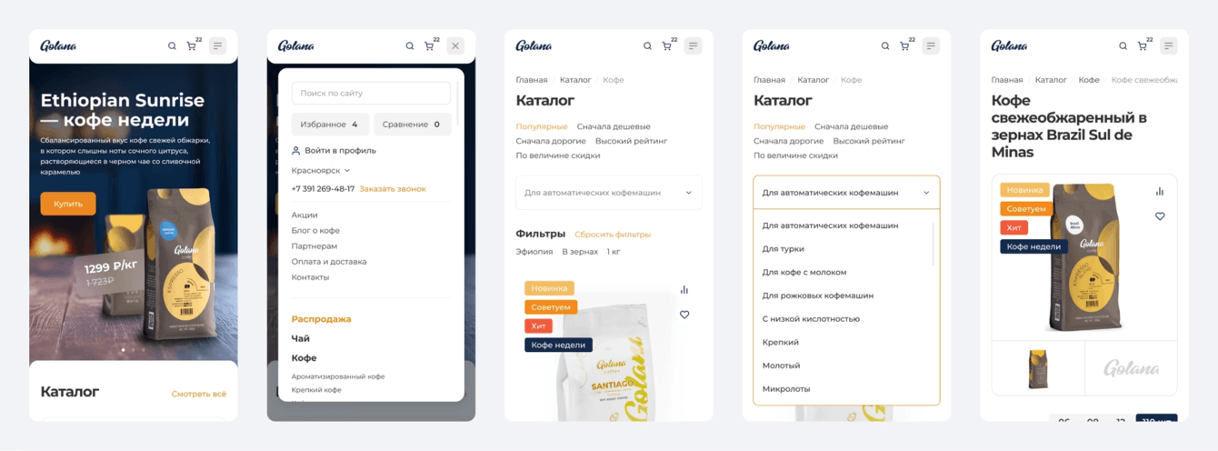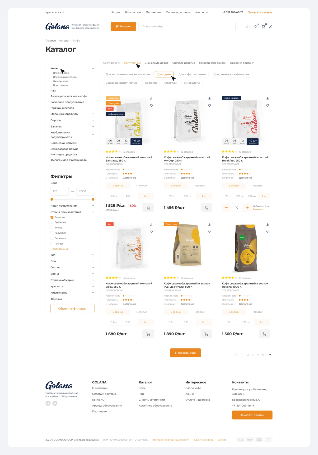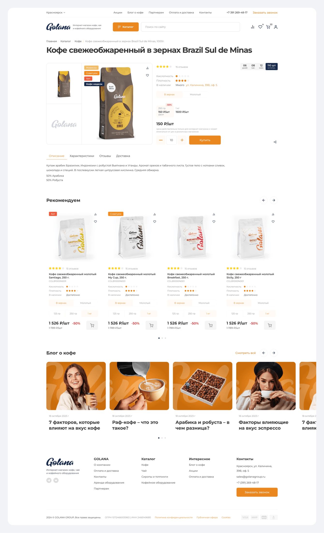 Golana — специализируется на обжарке кофе и аренде профессионального кофейного оборудования. Бизнес клиента ориентирован сразу на две аудитории: b2c и b2b.