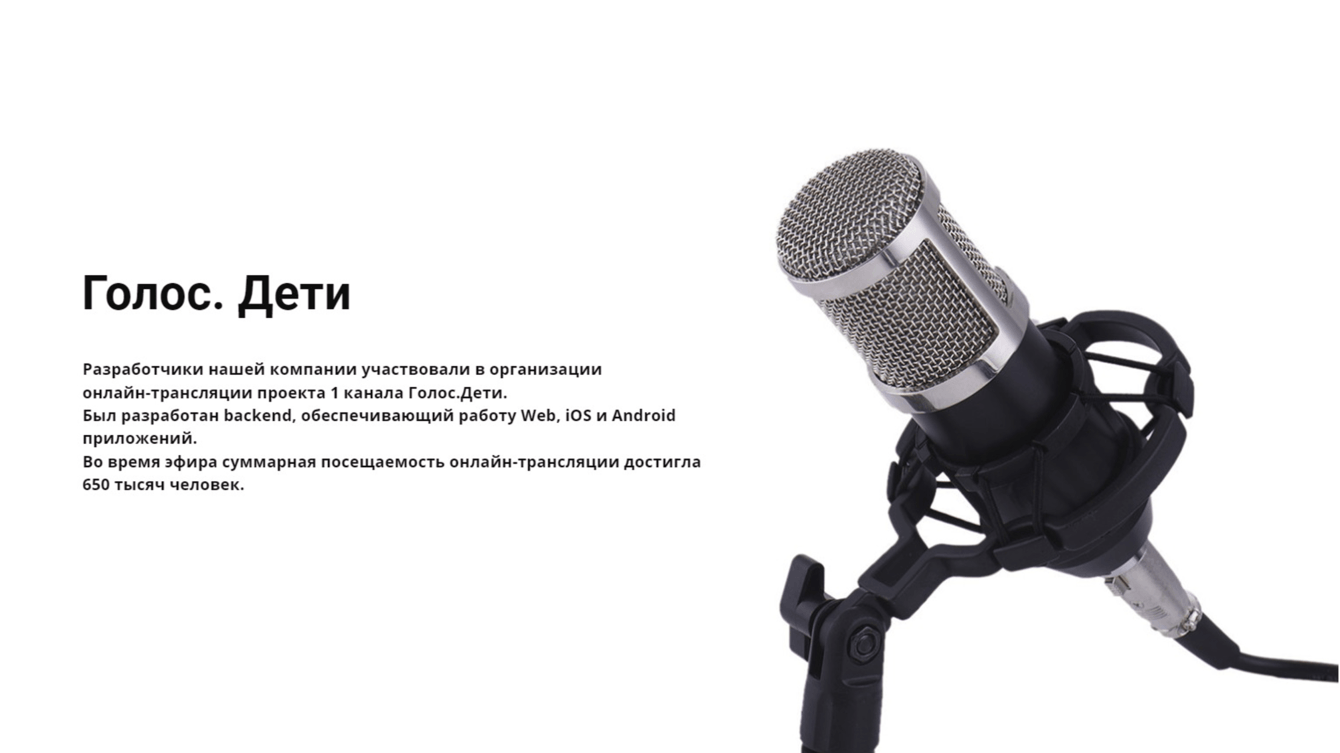 Разработчики нашей компании участвовали в организации онлайн - трансляции проекта 1 канала Голос. Дети.