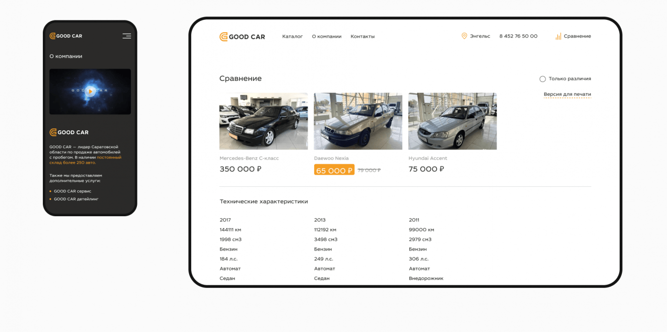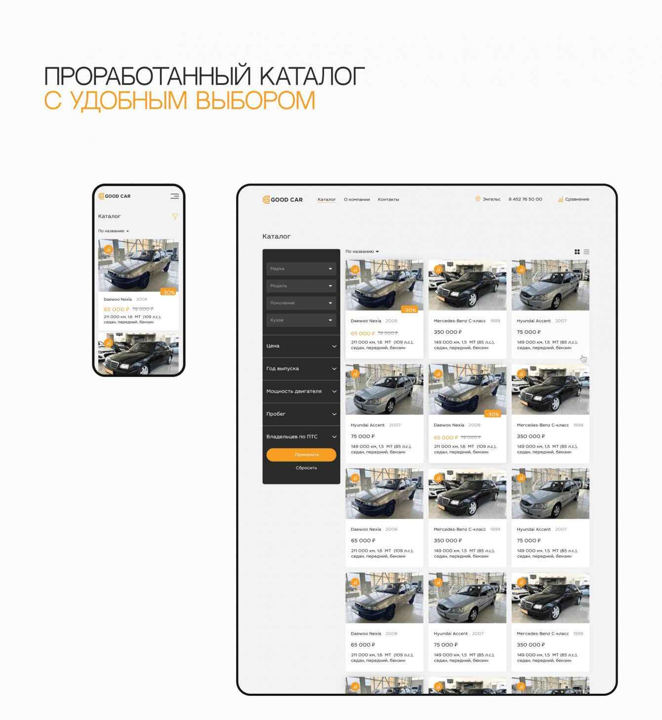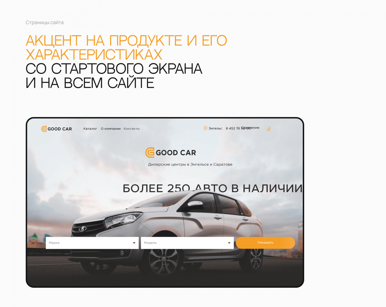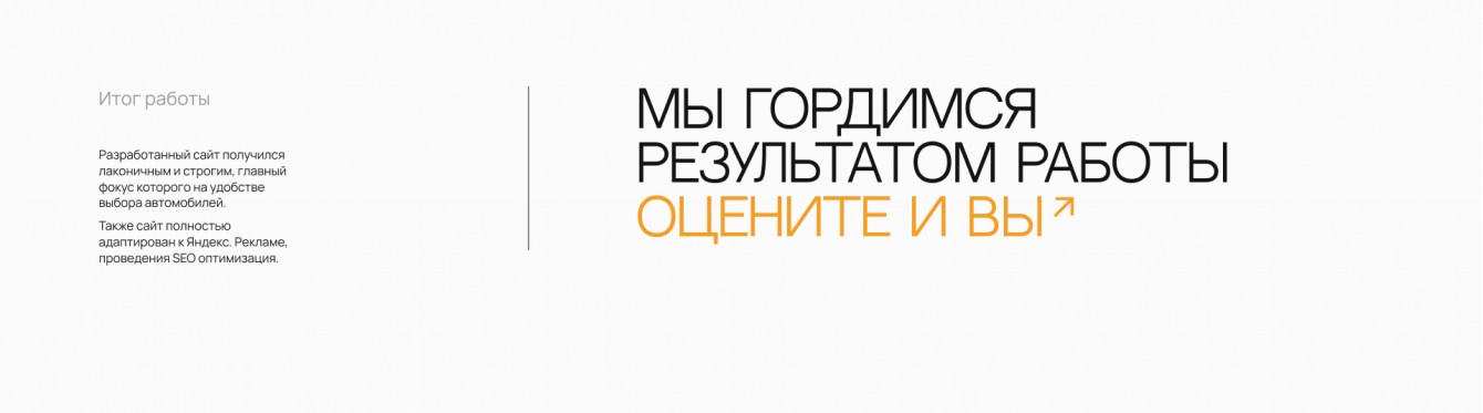 Разработанный сайт получился лаконичным и строгим, главный фокус которого на удобстве выбора автомобилей.