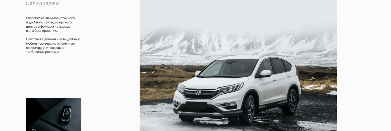 Основной задачей стала разработка минималистичного и удобного сайта дилерского центра с фокусом на продукт и его бронирование.