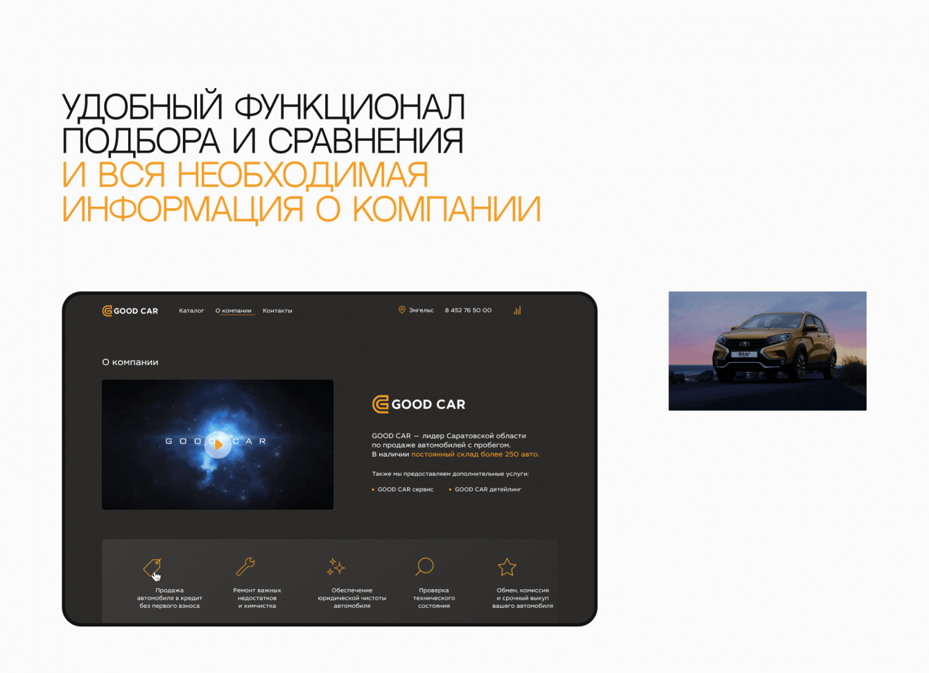 GOOD CAR — лидер и эксперт по продаже автомобилей с пробегом в Саратовской области. Ассортимент центра представляет более 200 автомобилей, все из которых прошли полную подготовку к эксплуатации.