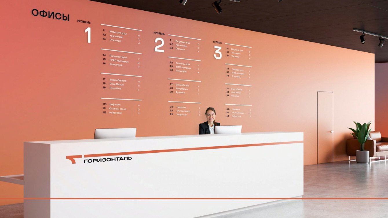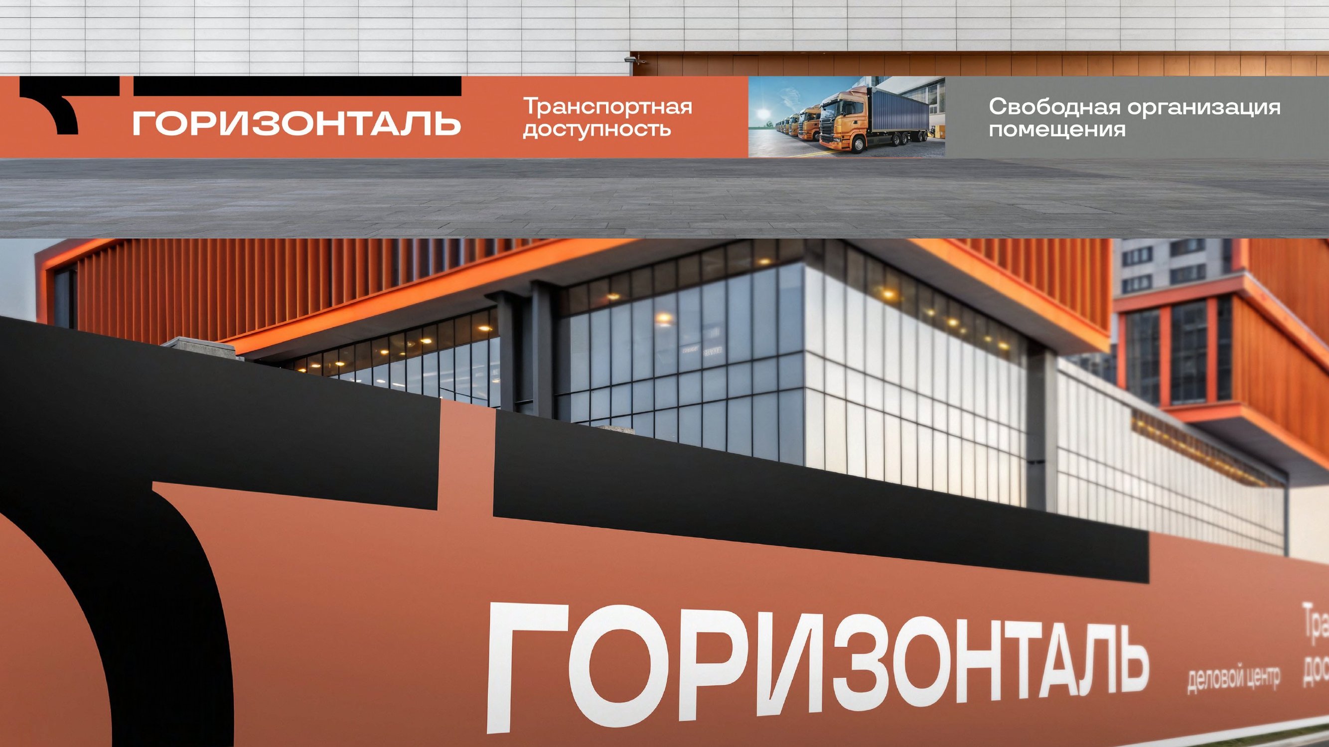 Идея: Покажем, что «Базовый» строит многофункциональный центр. Единое продуманное пространство для коммуникации всех составляющих бизнеса: от офиса и производства, до поставок. Горизонталь — все решения принимаются в одном месте!