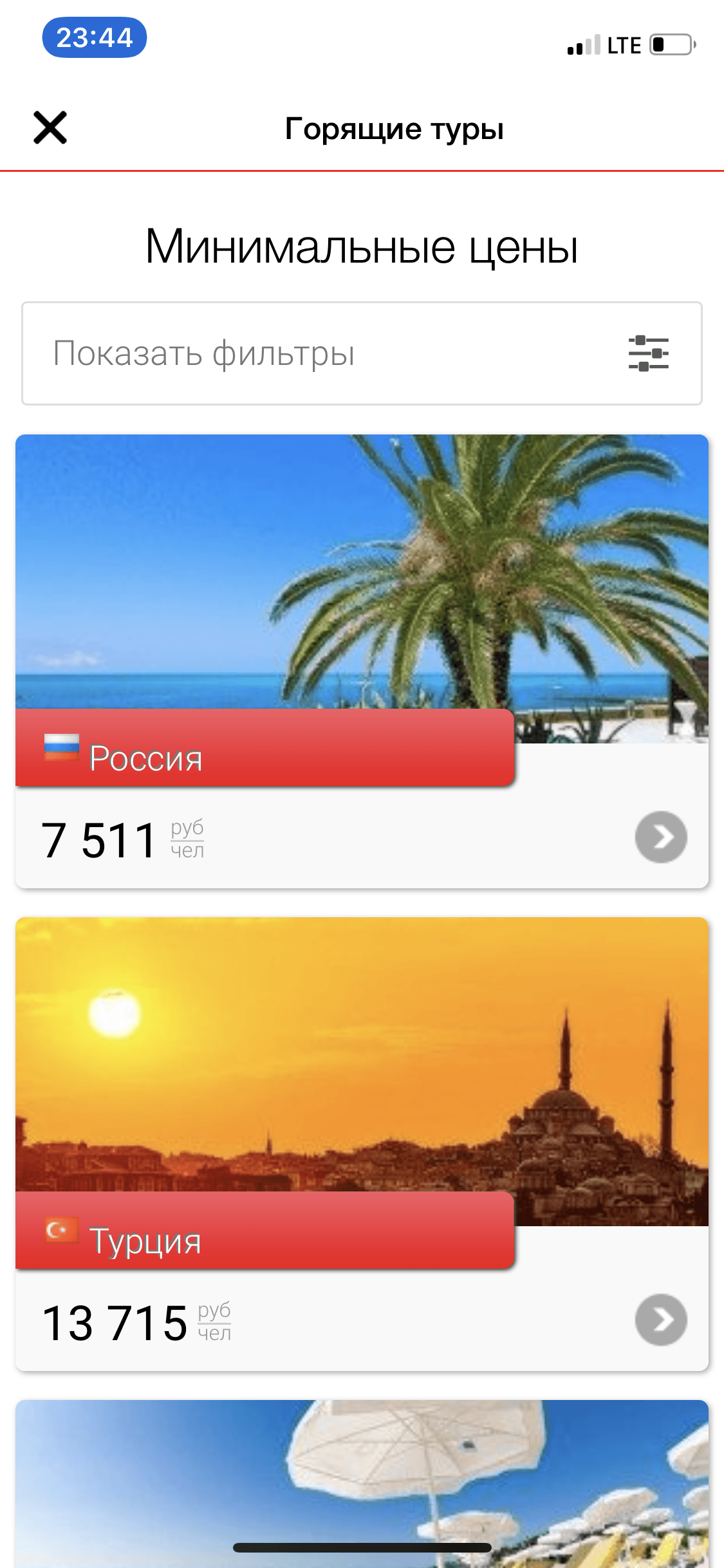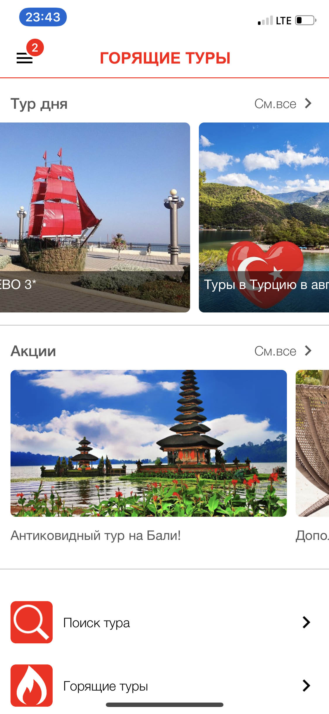 - просмотр предложений формата «Горящие Туры» (используется «Тур Визор»)