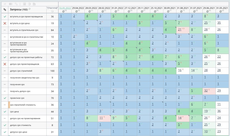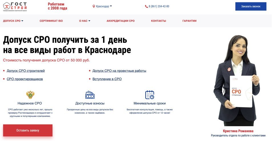 Сбор высокочастотных и среднечастотных запросов по теме оказания услуг по оформлению свидетельств и вступлению в СРО, оптимизация страниц сайта под запросы для их выведения в ТОП-10 выдачи поисковых систем: