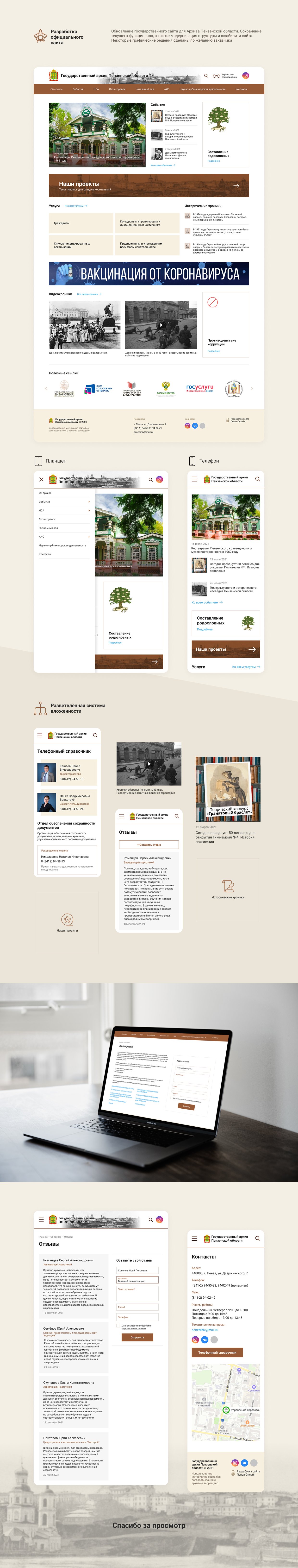Сайт полностью адаптивен под разрешения монитора, планшета и смартфона.