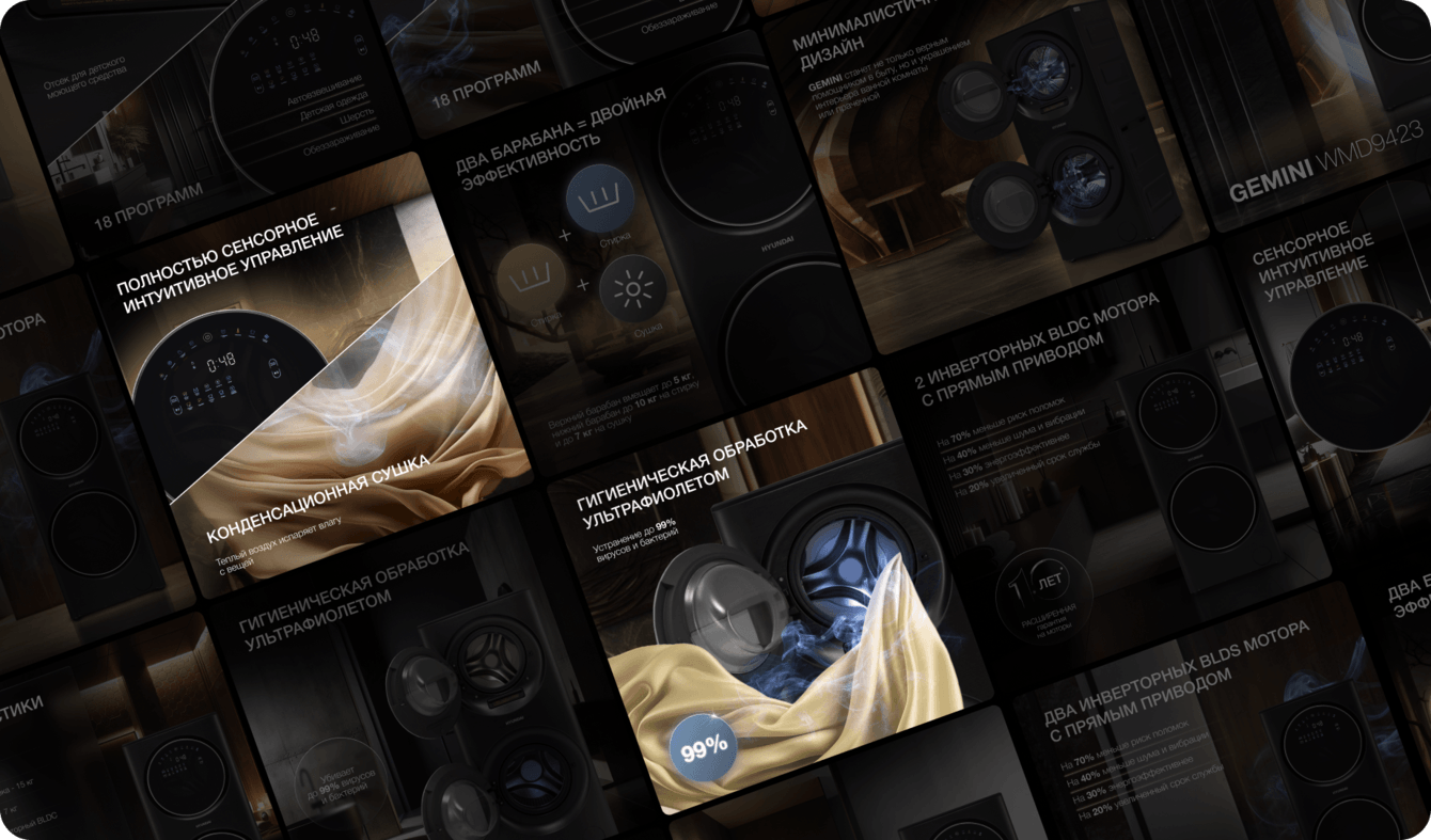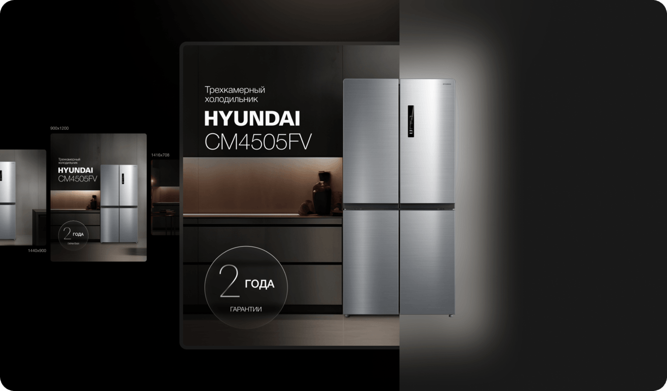 Для Hyundai мы: разрабатываем концепции, которые базируются на нами разработанных шаблонах. Создаём презентации, сочетающие продуктовый фокус и креативный подход, что делает их понятными, эффектными и запоминающимися. Разрабатываем креативы для продвижения продукции, включая адаптивные решения для маркетплейсов и digital-каналов.