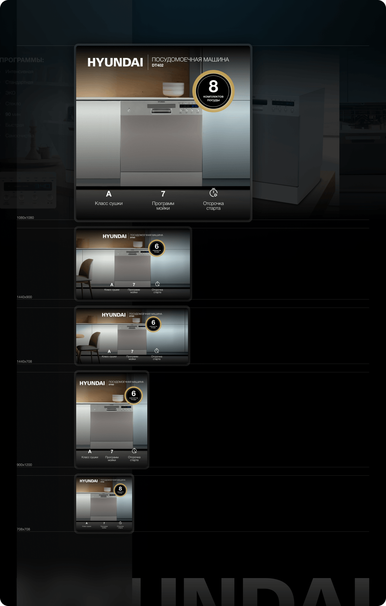 – Обеспечение единого визуального стиля, соответствующего бренду Hyundai, и высокую адаптивность контента под различные платформы.