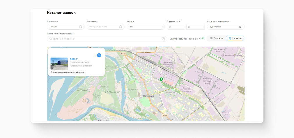 Размещение заявок на карте.