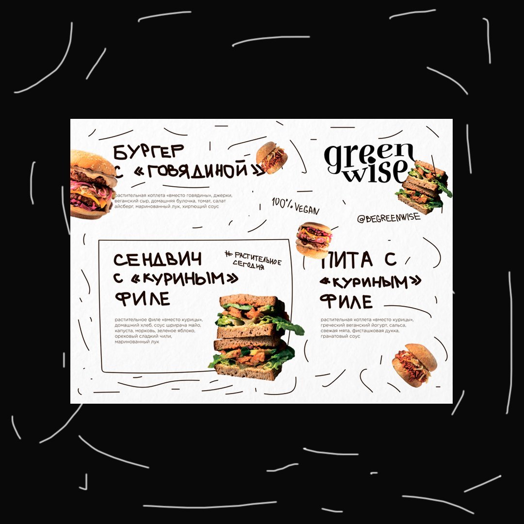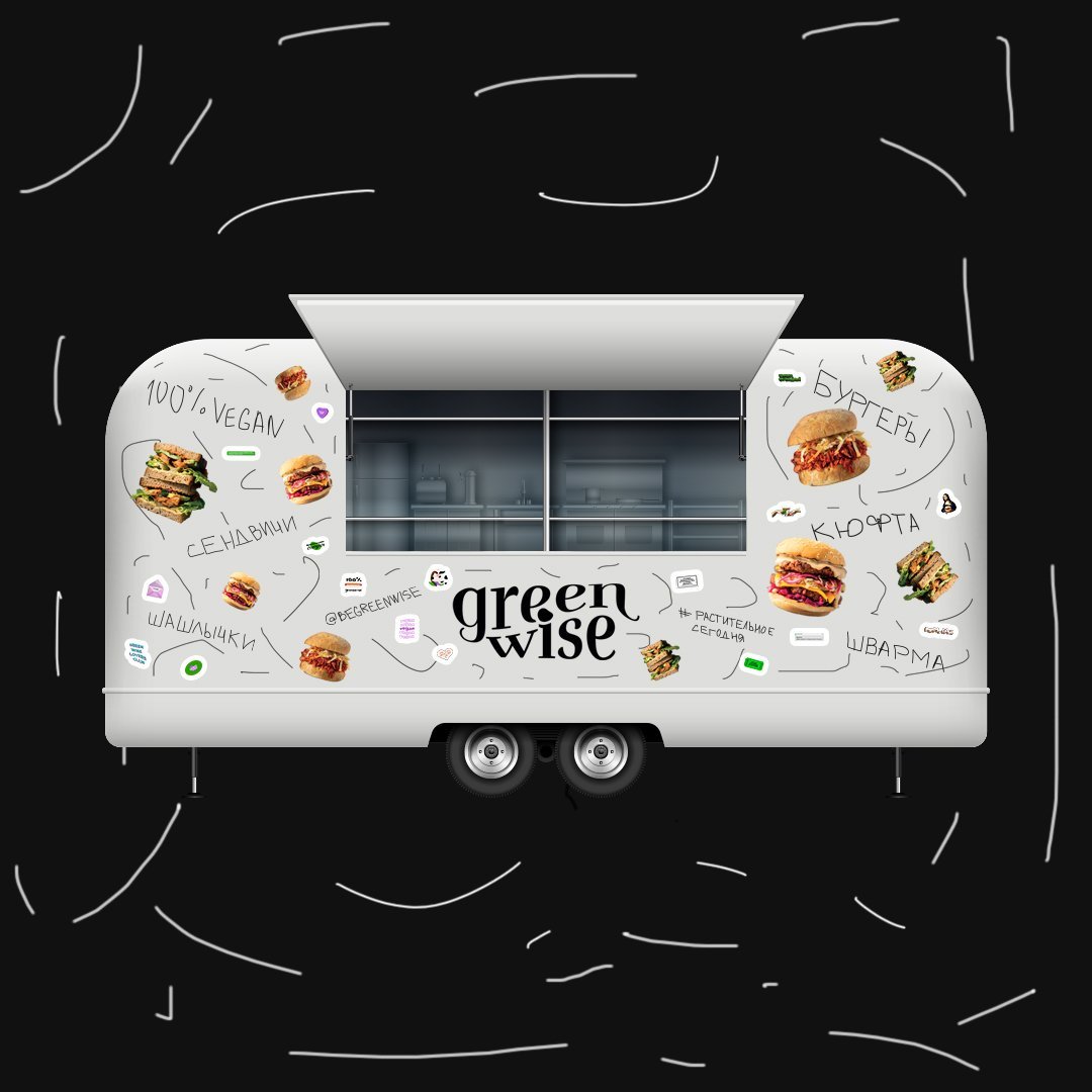 Ребята из гринвайз обратились за помощью придумать оформление и дизайн фудтрака для креачеллы, где тот самый фудтрак и должен был стоять, а также меню с блюдами, которыми они будут угощать участников креачеллы.