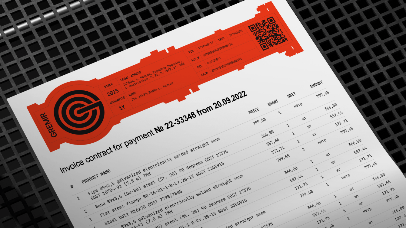 В поисках поставщика специалисты просматривают множество сайтов и сравнивают важные для себя параметры: соотношение цена-качество и скорость реагирования бизнеса на заявку. Счет — та точка касания, где бизнес может выделиться и запомниться. Этот документ должен вызывать у клиента доверие к «Гремиру» и показывать надежность компании.