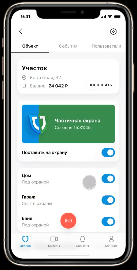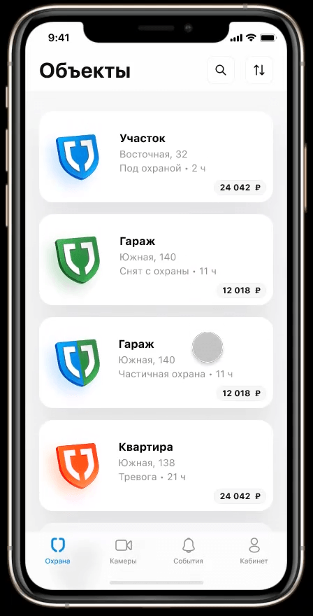 Главной идеей проекта было сделать процесс управления охраной простым и автономным, а также собрать несколько приложений в одном: компании хотелось, чтобы пользователи могли просматривать камеры видеонаблюдения, управлять умным домом и охраной в одном программном продукте.