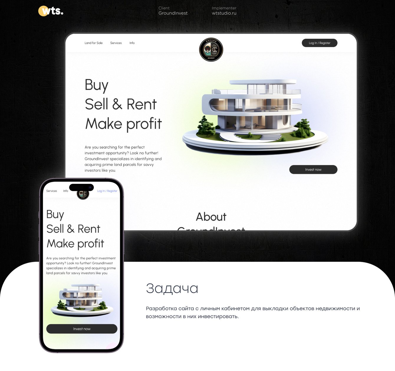 Разработали дизайн макеты сайта, продумали всю структуру и реализовали верстку. После верстки реализовали разработку на Wordpress с личным кабинетом, где клиент сайта может просматривать свои инвестиционные проекты и статусы их