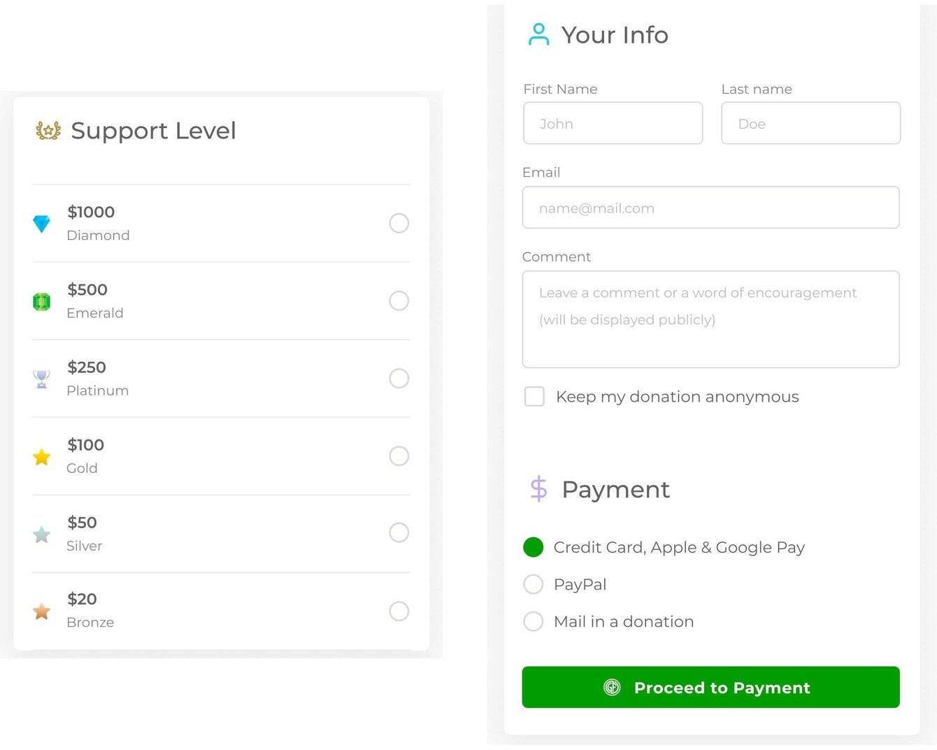 - сделать процесс пожертвования для поддерживающих простым и безопасным