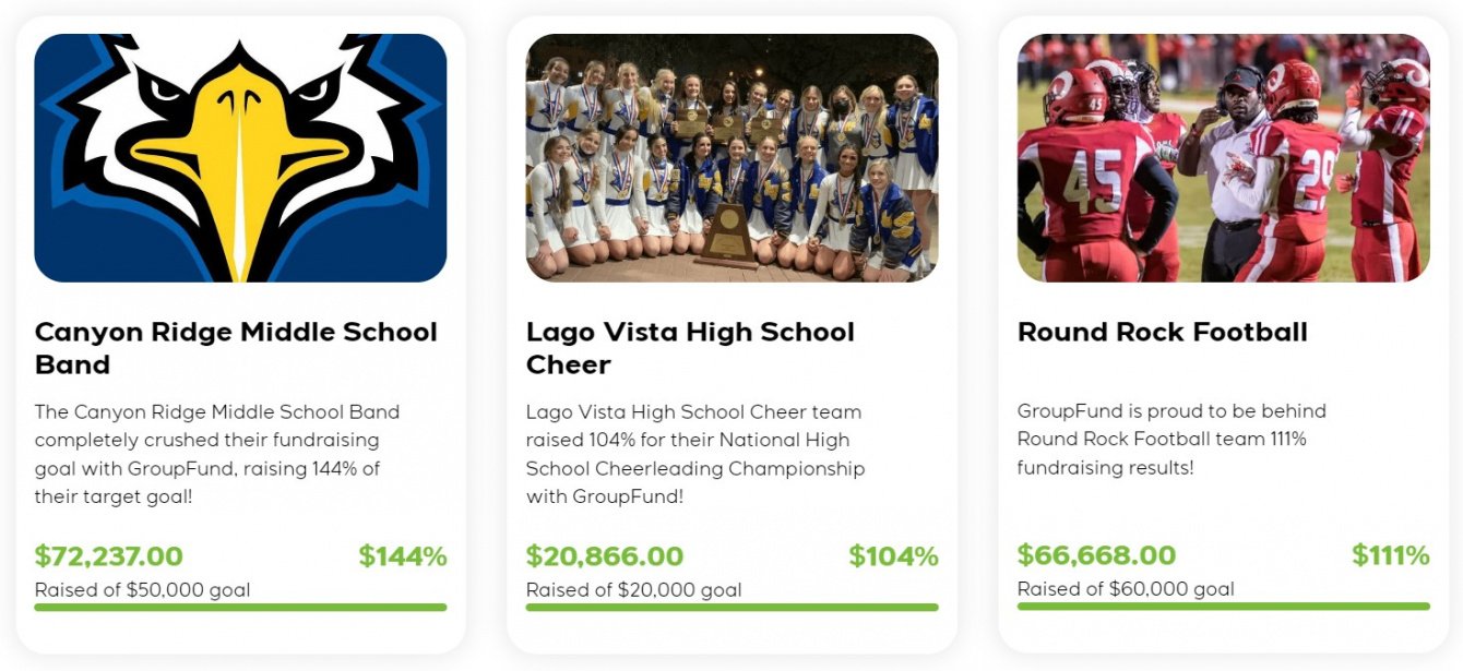 Ключевым фактором успеха, помимо сильной команды продаж GroupFund, является то, что платформа без проблем превращает студентов в пропагандистов. Теперь они могут просить о пожертвованиях через текстовые сообщения, электронную почту и социальные сети в несколько касаний, что мгновенно и экспоненциально расширило скорость и охват кампании, быстрее собирая больше денег для групп.