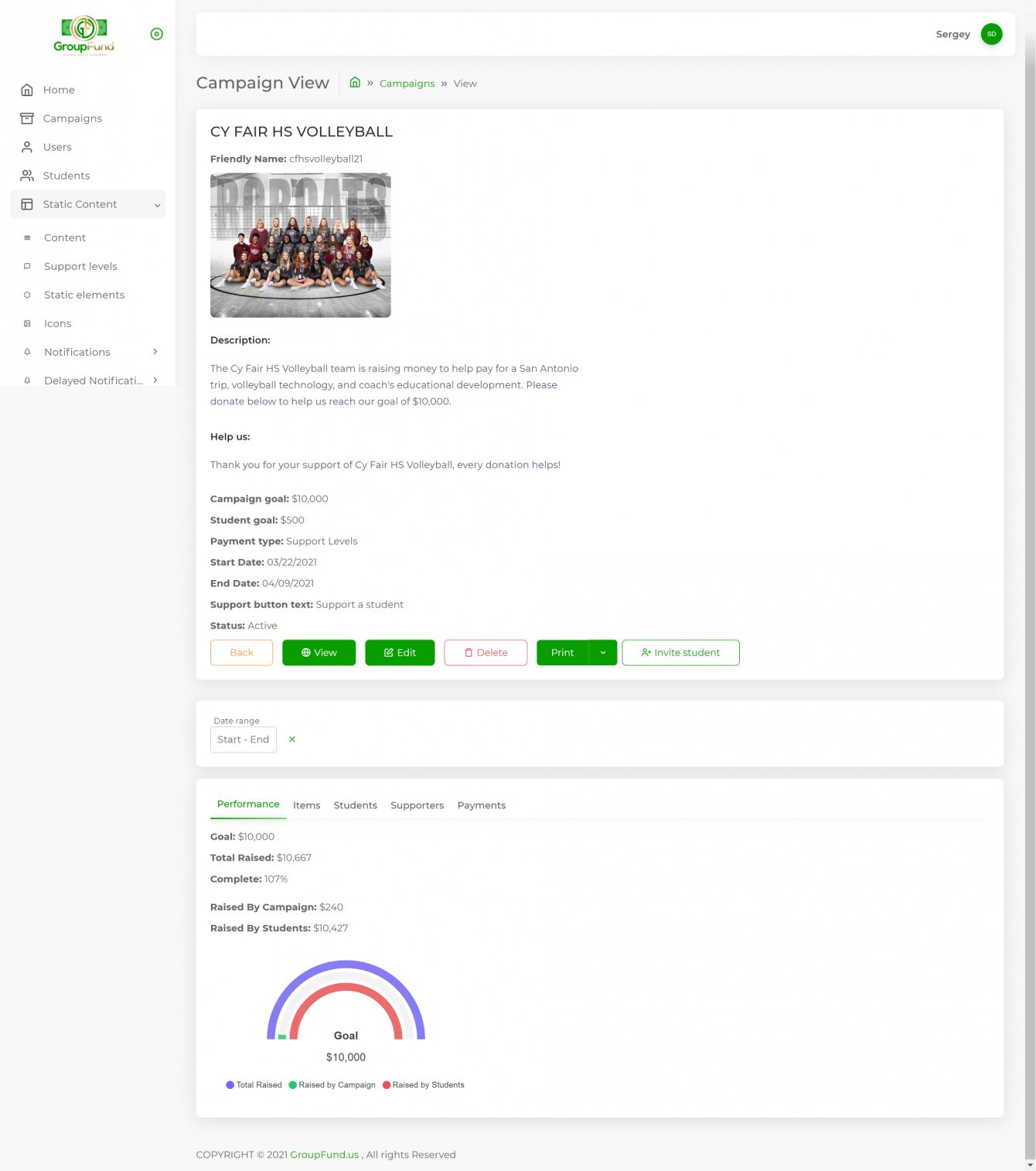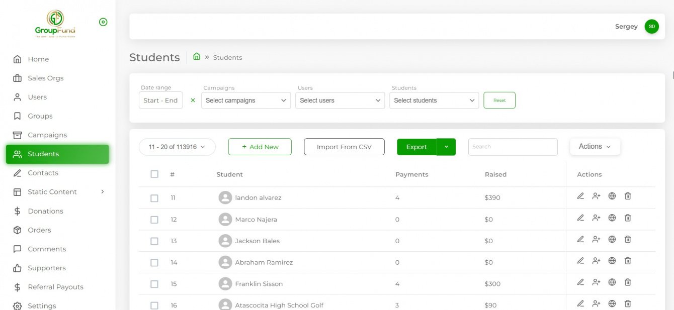 За 2 месяца мы реализовали готовую к использованию платформу для сбора средств под брендом GroupFund.US в срок и в рамках бюджета, которая за месяц после запуска принесла более 100 000 долларов для групп. Другие ключевые метрики, такие как "Среднее собранное" с каждого студента ($250) и Средний размер пожертвования ($60), превосходят отраслевые стандарты. Не менее впечатляющим оказался отклик организаторов кампаний, студентов и спонсоров. Более 90% из них утверждали, что им понравился опыт.