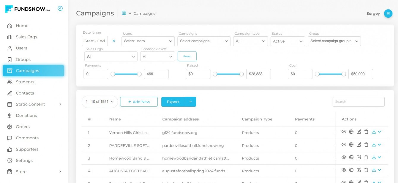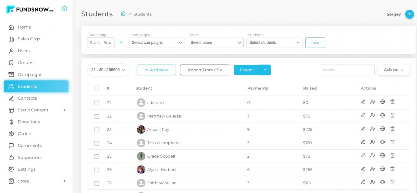 Фандрейзинг в школах - это сезонная история. Максимальная активность здесь в начале 1 и 2 семестров. Чтобы платформа не менее активно жила и в другое время, мы начали работать над функционалом регистрации и создания кампаний в клиентской части. Чтобы любой человек мог зарегистрировать свою команду и запустить кампанию. Также он имеет возможность указать реквизиты для выплаты собранных средств.