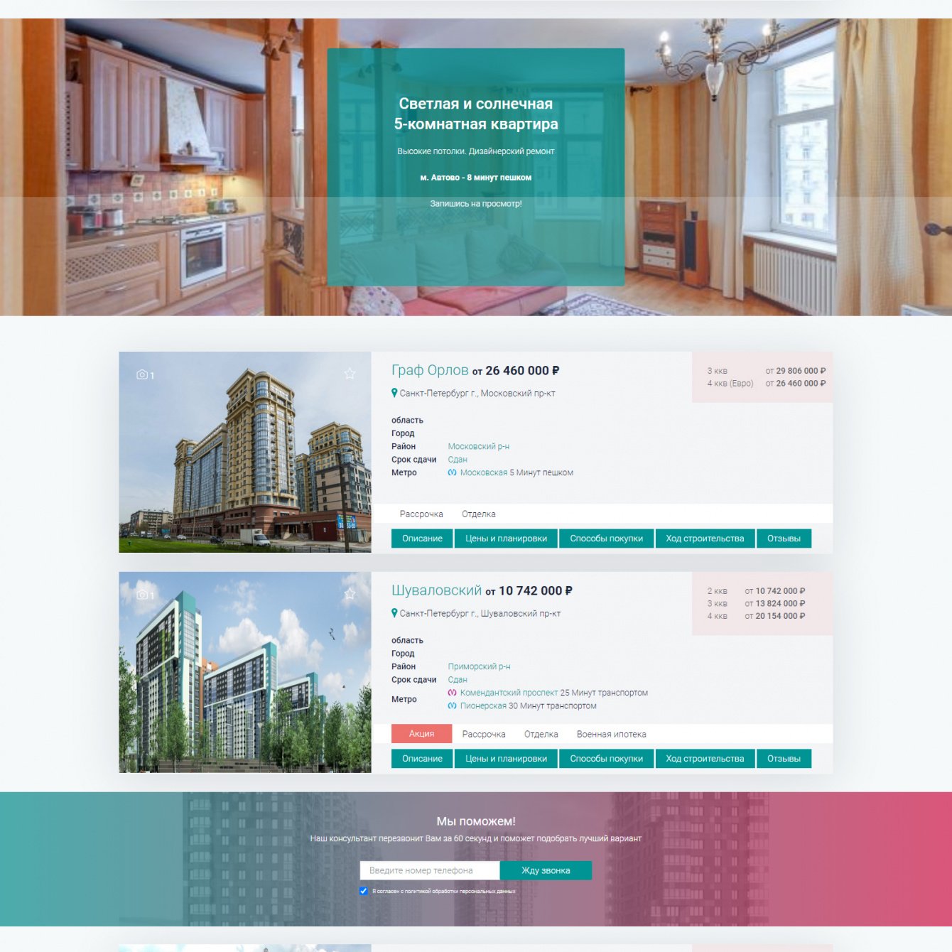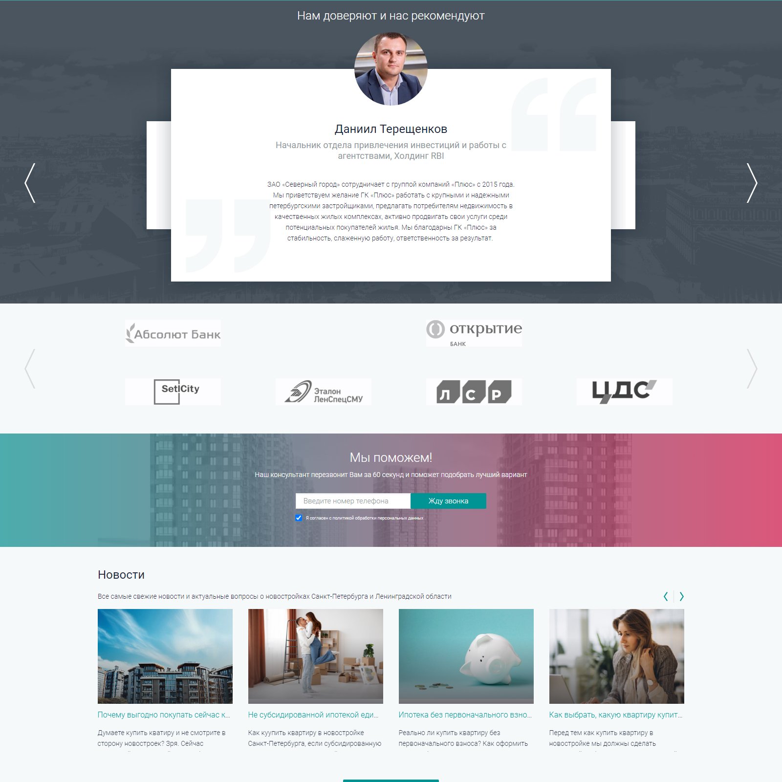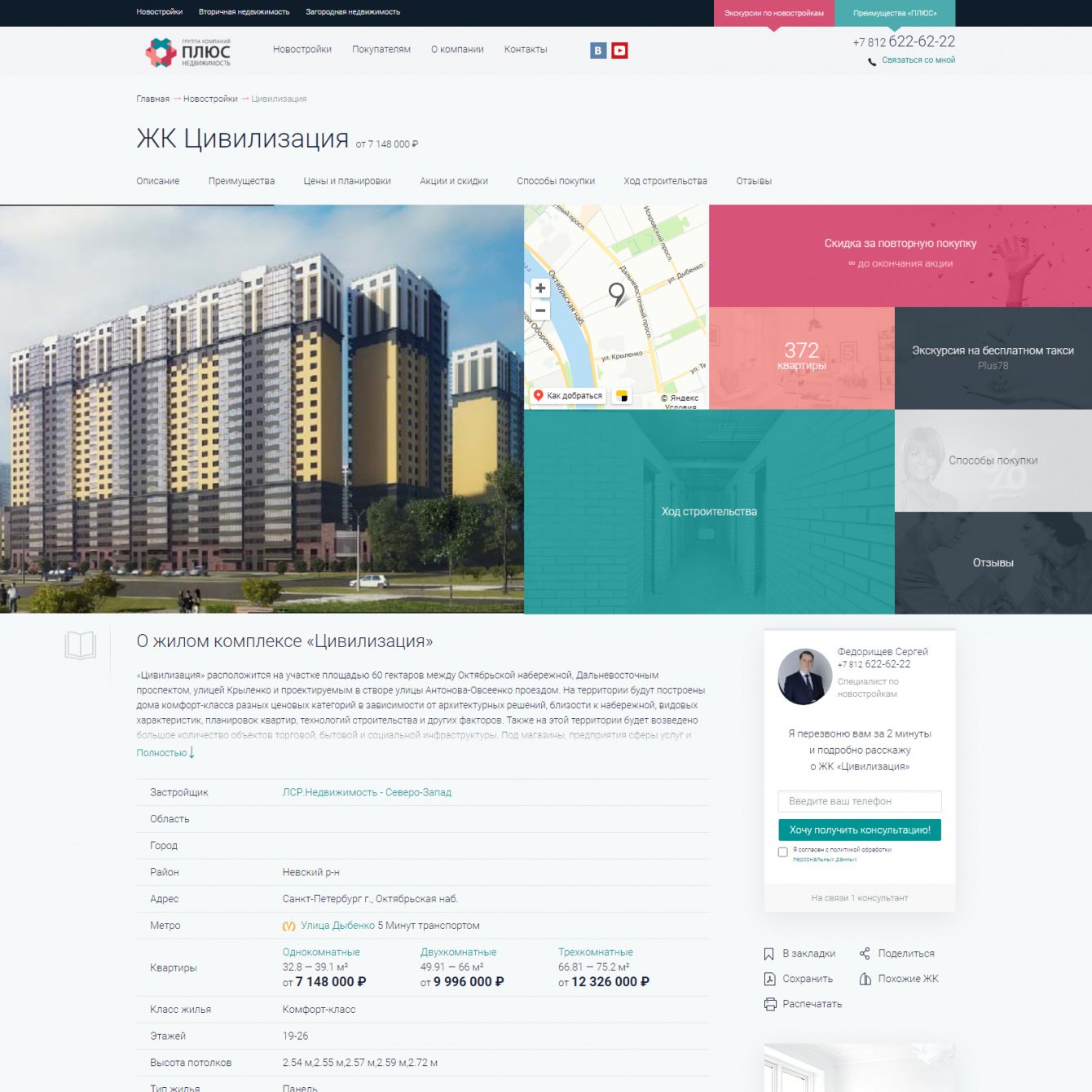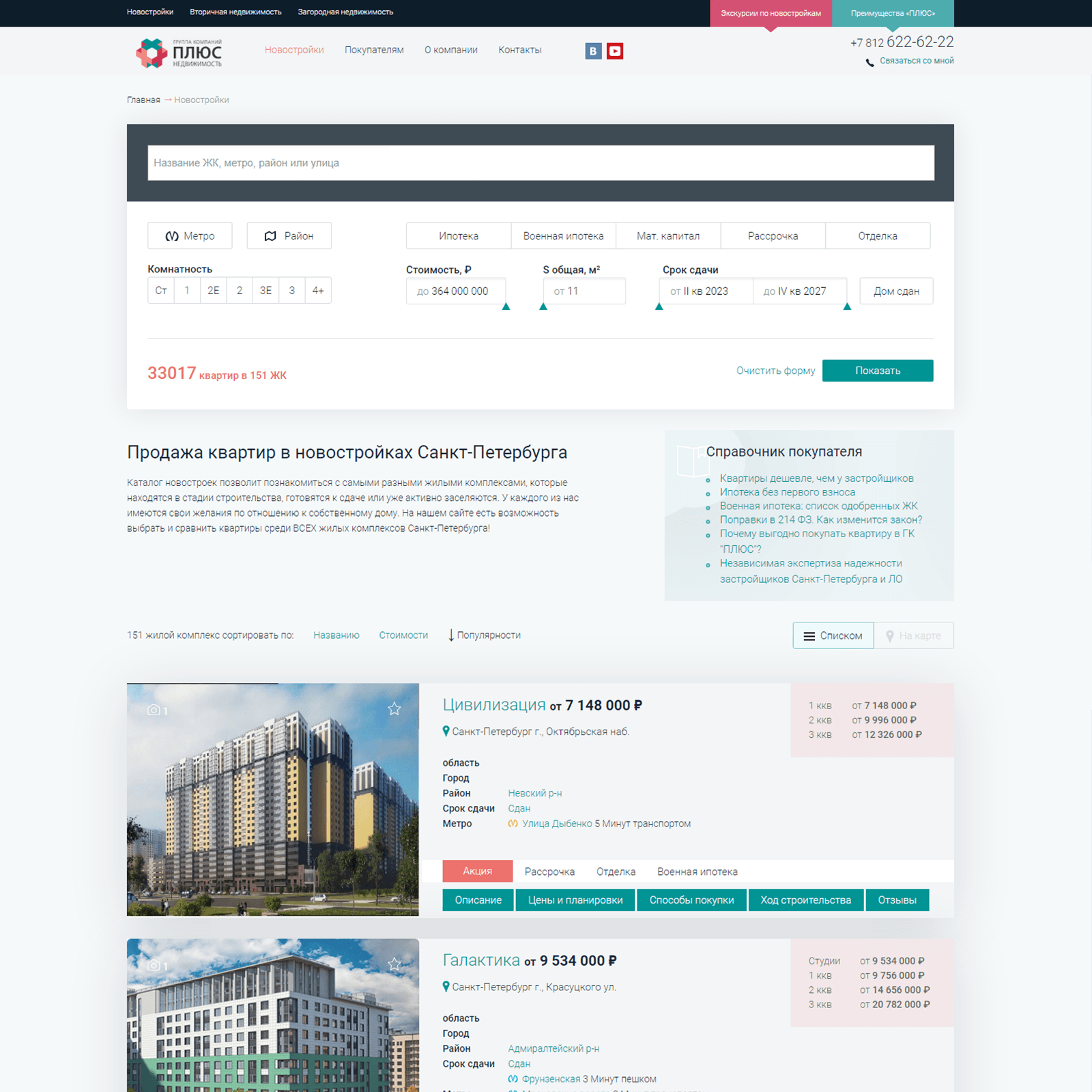 Плюс – лидер недвижимости Санкт-Петербурга. 100 застройщиков, 300 жилых комплексов, 64 000 предложений квартир и 300 договоров недвижимости ежемесячно.