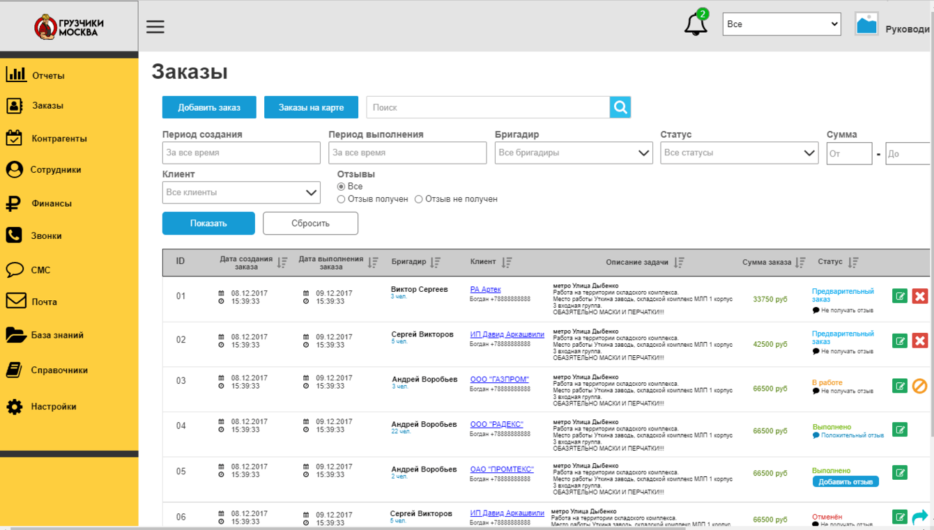 Ссылка на демонстрационную версию системы: http://gruzchiki.demo.longcatdev.com/login