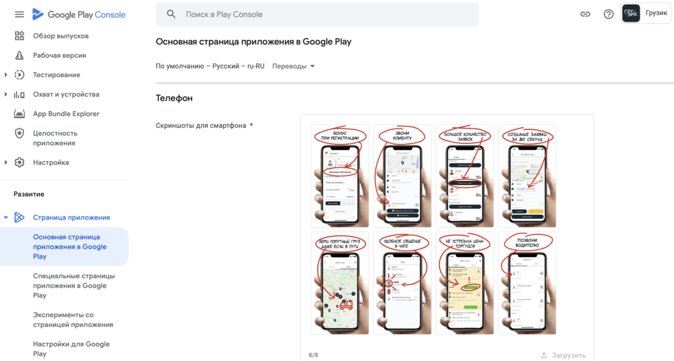 Мобильное приложение "Грузик" со следующими функциями: