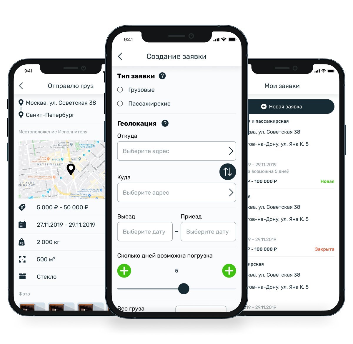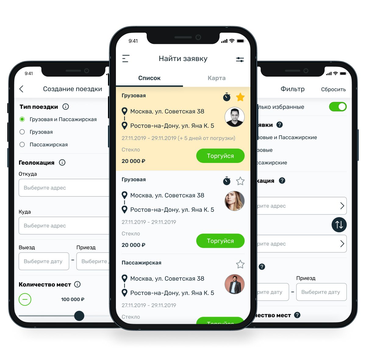Грузовые и пассажирские перевозки, логистика: разработка мобильного приложения Грузик (iOS / Android), в котором: