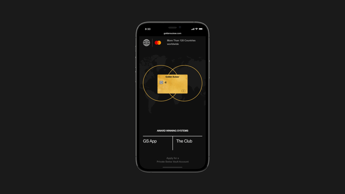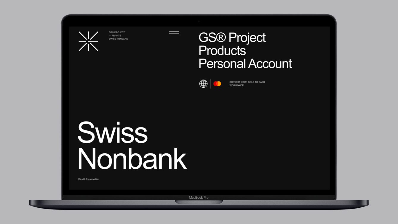В логотипе стремились отразить специфику компании: она занимается продажей английского и швейцарского золота. И нам удалось найти подходящее решение: в разработанном знаке угадываются одновременно и флаг Великобритании, и швейцарский герб. Кроме того, считывается первая буква названия компании — G. А расходящиеся лучи символизируют многофункциональность, т.к. конечный продукт GS-Project — это многофункциональный сервис в кармане.