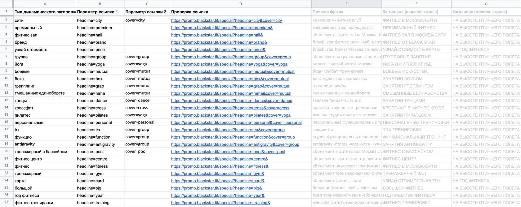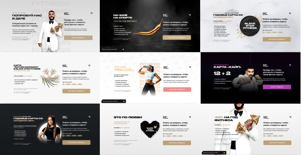 Подготовили для A/B тестирования ряд гипотез, основанных на критериях выбора фитнес-клуба: расположение, цена, наличие бассейна и пр. Кроме этого, проработали уникальные предложения для каждой из групп аудиторий (например, подписчикам Black Star и Тимати делали акцент на бренд, а тем, кто интересуется силовыми тренировками на уровень тренажеров).