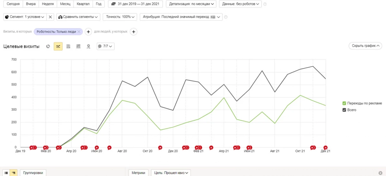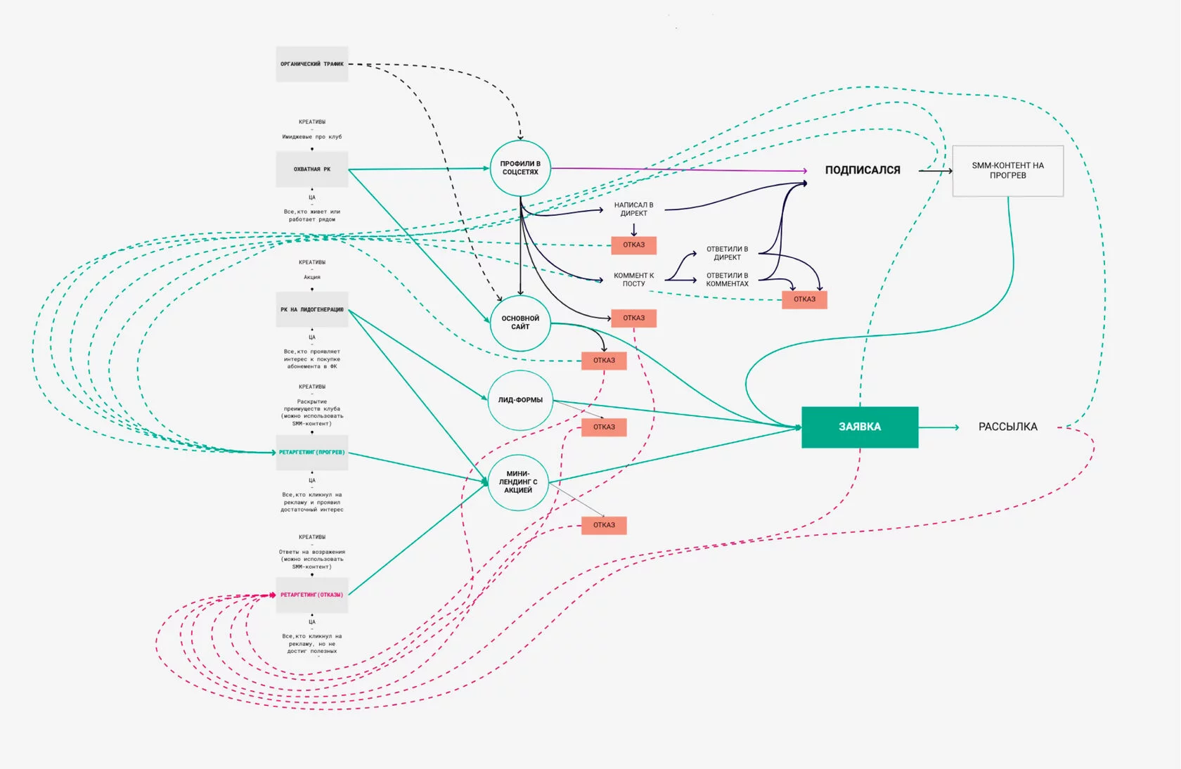 В зависимости от того, откуда и когда пользователь посетил сайт, а также как быстро он закрыл страницу, мы разработали сегменты ремаркетинга, где-либо подталкивали его к заявке через раскрытие преимуществ клуба, либо работая с возражениями по аудиториям, попавшим в отказы, за исключением нецелевых сегментов.