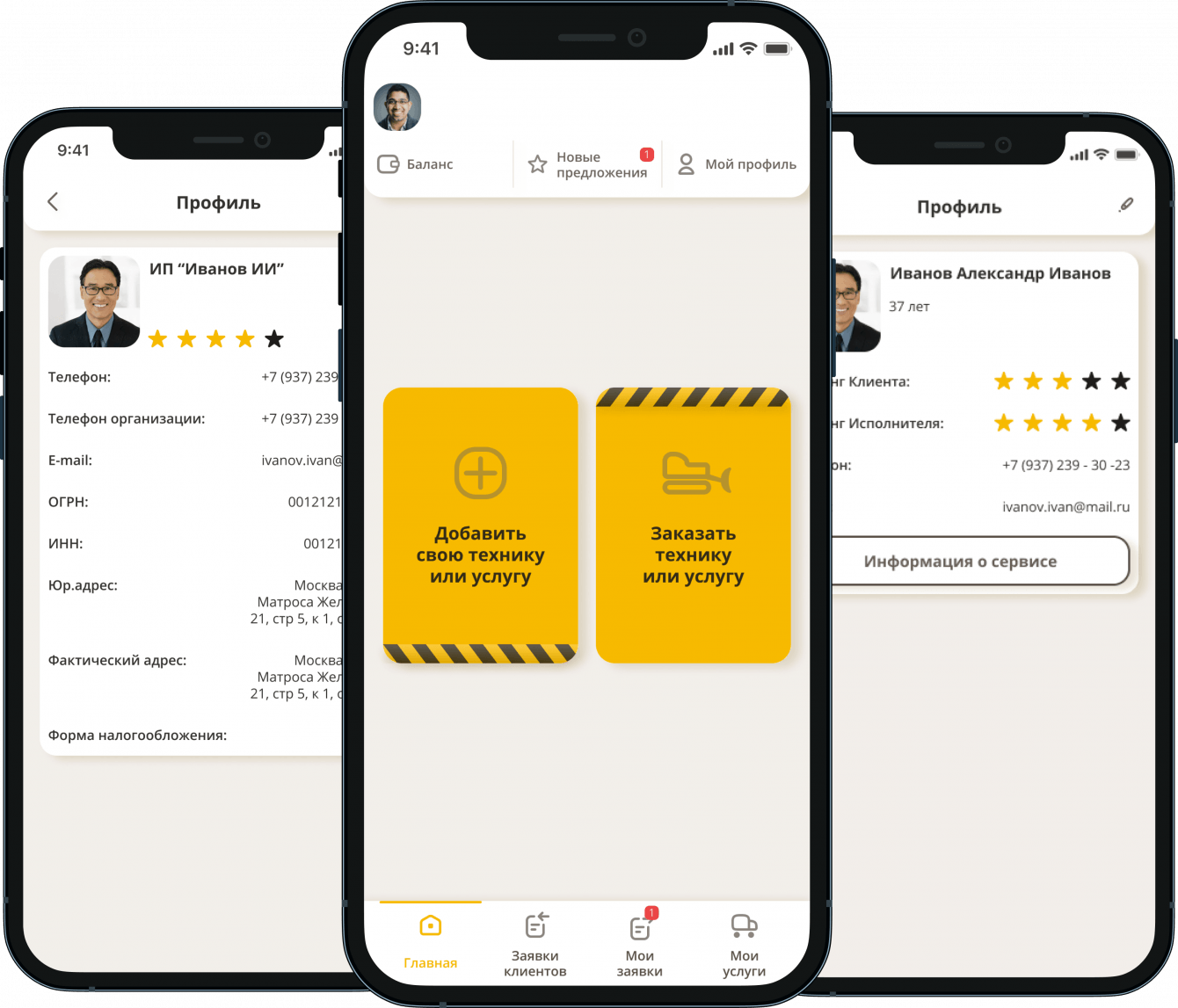 - Клиент может создать заявку на аренду или услуги спецтехники;