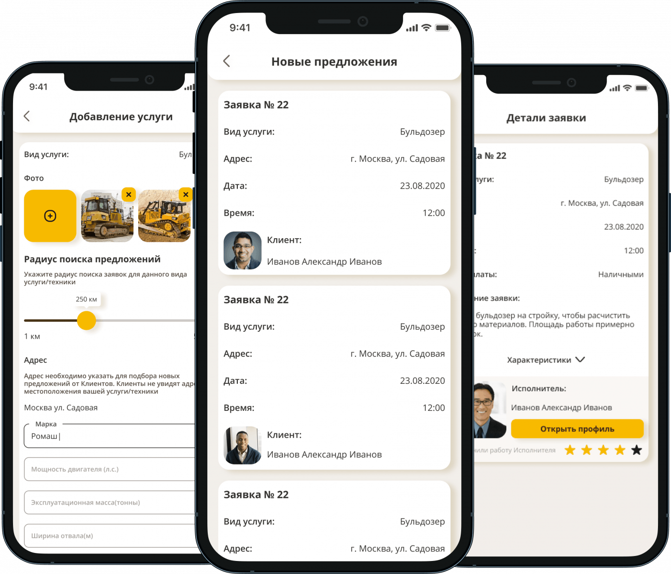 Маркетплейс спецтехники: разработка мобильного приложения Гусеница (iOS/Android), в котором:
