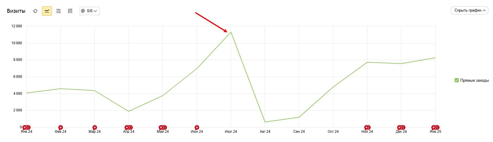 Летом спрос на пиломатериалы достигает пика: активное строительство, высокий трафик на сайте, увеличение числа клиентов. Зимой продажи снижаются, и удерживать интерес аудитории становится сложнее. Любая ошибка в этот период может привести к падению позиций в поиске и, как следствие, финансовым потерям клиента.