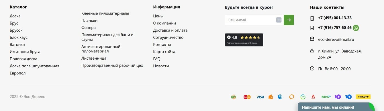 Многие разделы каталога были расширены с учетом реального спроса. Мы анализировали, как потенциальные клиенты формулируют свои запросы, и адаптировали структуру под их логику. Например, «доска строганая» и «доска строганая сухая» — это одно и то же, но покупатели ищут товар по-разному. Чтобы охватить максимальное число запросов, мы создали отдельные страницы под каждое из этих наименований, даже если ассортимент внутри идентичен.